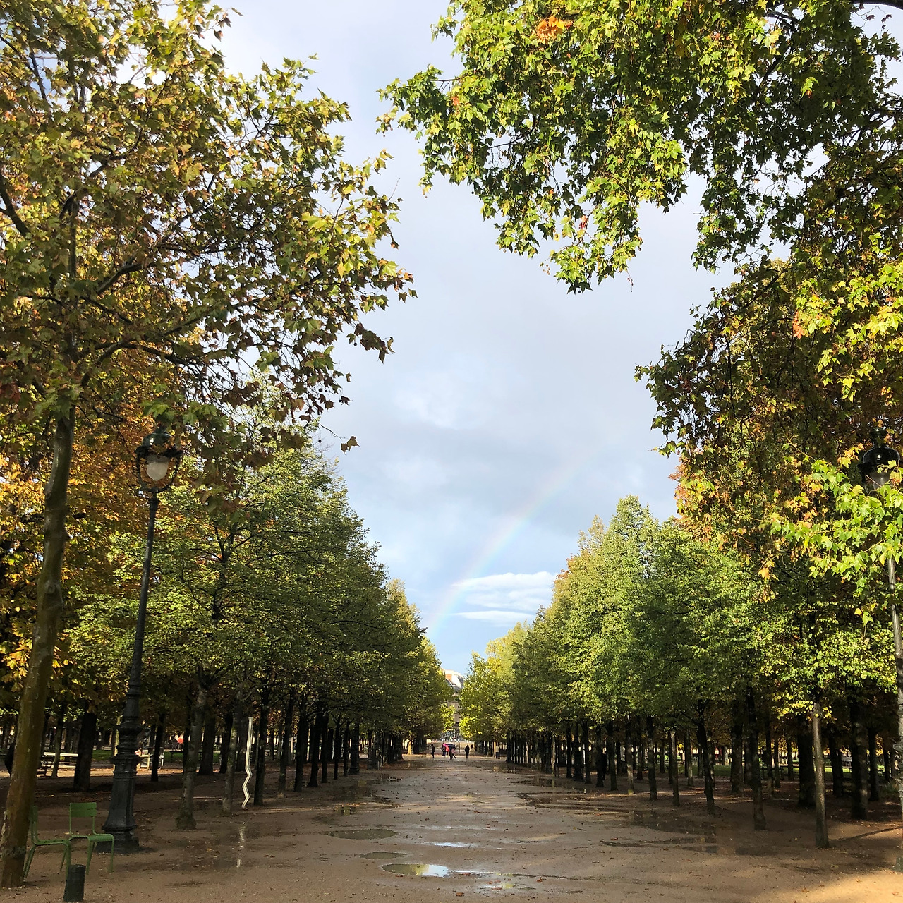 우산을 숙소에 두고 온 참이라 망설이다가 모자의 챙이 매우 길다는 점을 믿고 밖으로 나섰다. 다시 뛸르히 정원을 가로질러 걷는데, 한 시간 전까지만 해도 북적거리던 정원이 텅 비어 있었고, 비를 흩뿌리는 구름 사이로는 햇빛이 비쳐 환했다. 빗줄기는 꽤 굵었지만 크고 두꺼운 플로피햇이 비를 완벽하게 막아주었다. 센 강으로 통하는 입구, 비가 그친 듯해 뒤돌아보니 커다란 무지개가 떠 있었다.