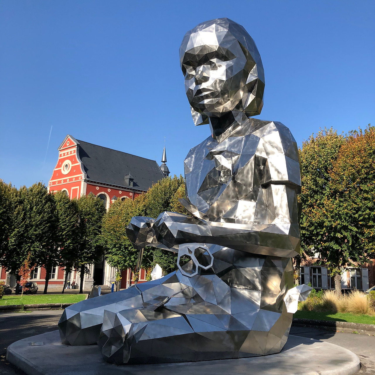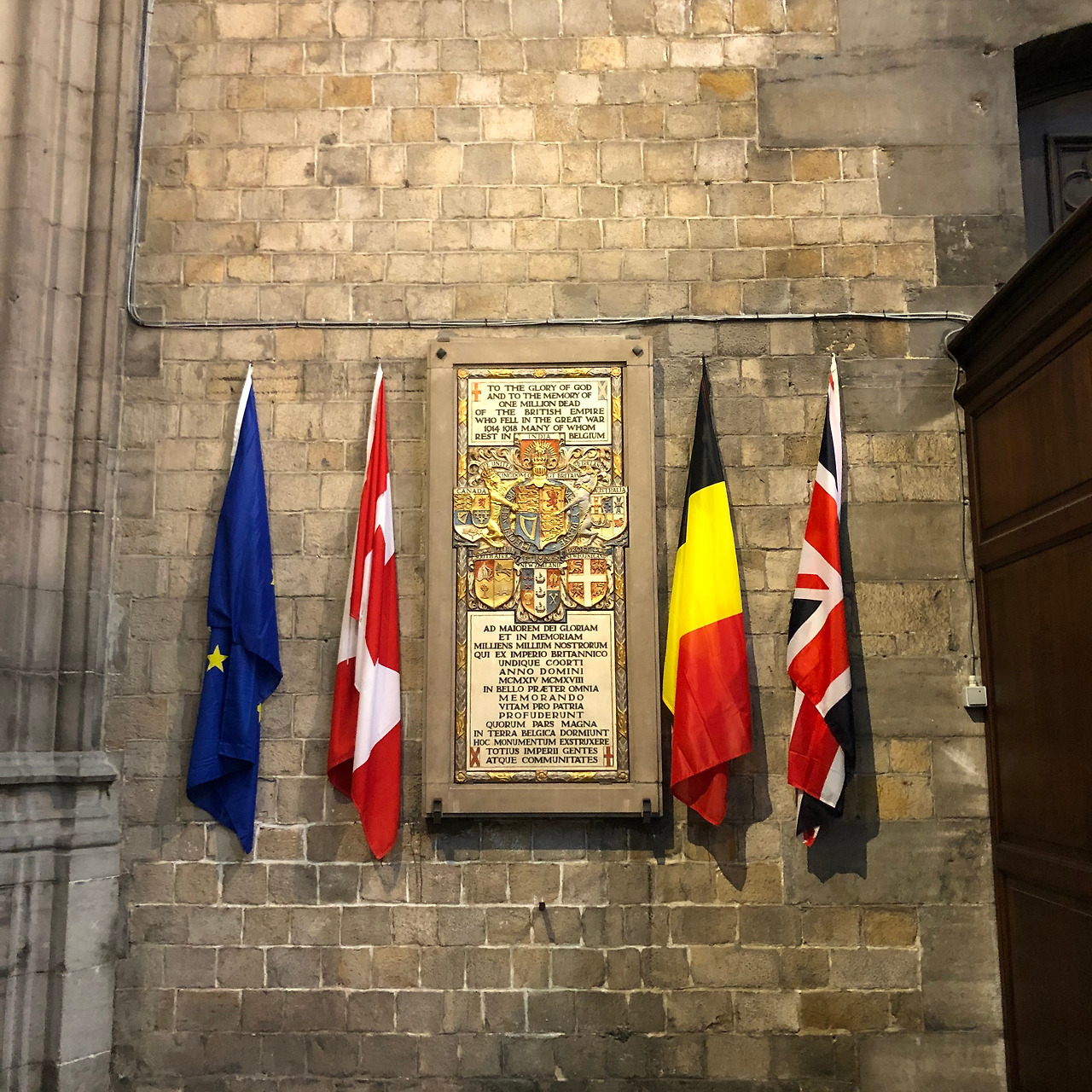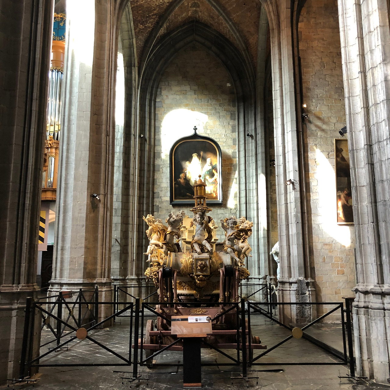 1시가 넘어 도착한 두 번째 환승지는 벨기에의 작은 도시 몽스Mons. 환승 대기 시간은 1시간 반. 역사 내에 코인락커도 따로 없는 것 같길래 캐리어를 질질 끌고 도로를 건너, 위로 뻗은 언덕길을 올랐다. 길 끝에 대성당이 하나 있다. 앞에 꼭 소녀상처럼 보이는 거대한 동상이 있는데다가, 성당에 들어서니 EU기와 오스트리아, 벨기에, 프랑스 국기가 차례로 걸려 있는 걸 보면 아무래도 도시에 얽힌 역사가 꽤 깊은가 싶다.