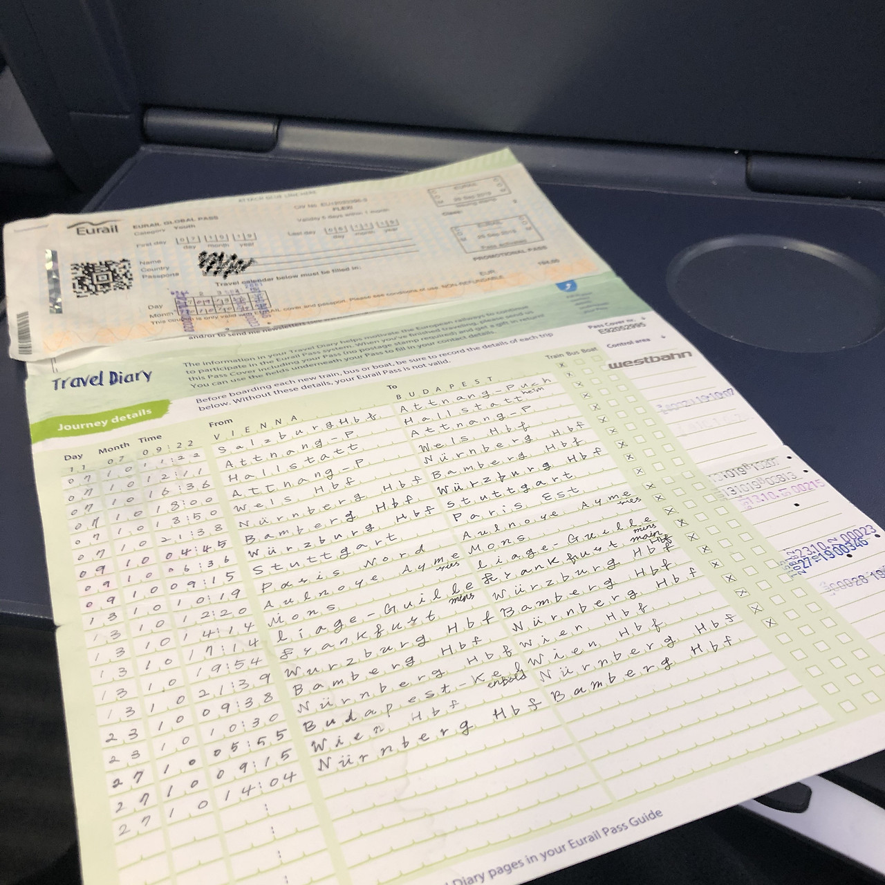 내가 고른 건 글로벌패스 1개월 내 5일권 유스였다. 당시 진행하던 10%할인에 프리미엄 배송까지 해서 총 220유로를 살짝 웃도는 가격(배송비 제외했을 경우 194유로). 당연히 일찍 구매한다면 일일히 각국의 철도 사이트에 접속해 시간과, 때로 좌석까지 지정된 티켓을 구매하는 게 훨씬 저렴하지만, 나처럼 여행이 1주일 앞으로 닥쳐왔는데 아무 계획도 없던 사람에게는 출발일이 임박해 값이 천정부지로 뛰어오른 티켓을 하나하나 사모으느니 유레일 패스로 한번에 해결하는 편이 낫다.