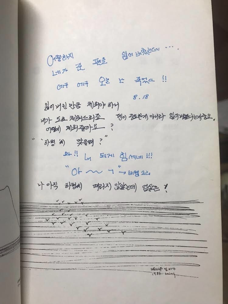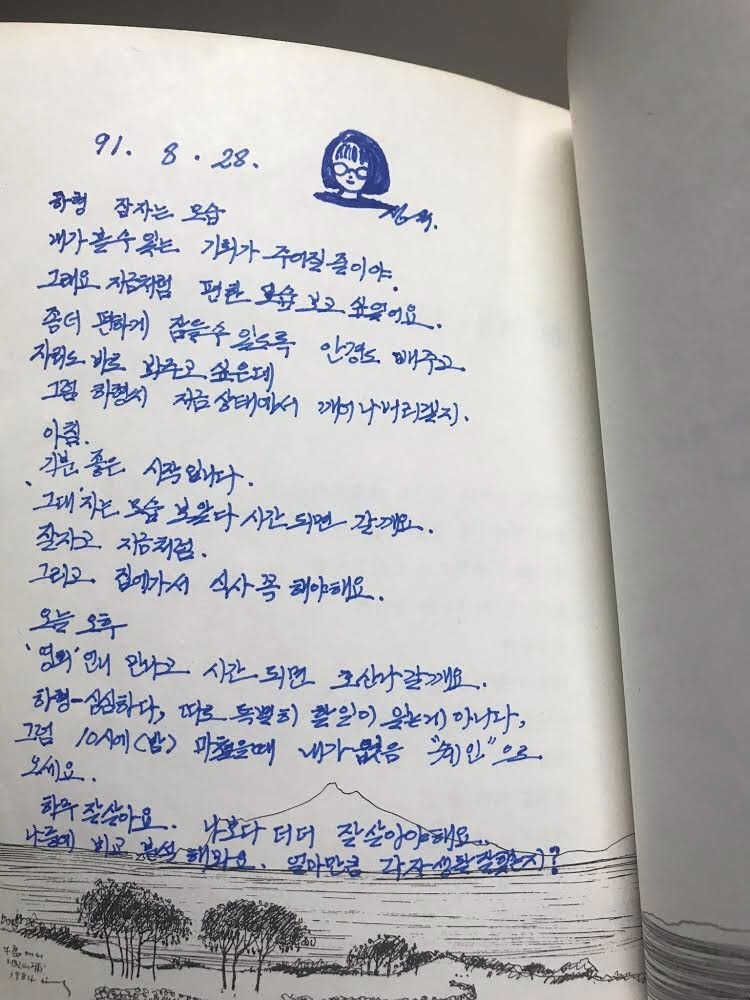 당시 엄마는 군대에 간 남친을 기다리는 입장이었지만... 아빠를 만나 고무신을 꺾어 신으셨다. 덕분에 두 분이 연애하는 동안 군대에 있던 전남친이 탈영해 찾아온 적도 있다나. 아빠와 함께 만나 이야기를 나눠 본 후 조용히 돌아가셨다는데, 엄마는 사실 그 사람이 사귈 때 그렇게까지 좋은사람이 아니었다면 (그러니까 그 전남친이 사귈 때 그렇게 헌신적이고 다정해서 그 사람이 떠난 빈자리가 못 견디게 시리지 않았더라면) 아빠가 우리의 아빠가 될 리도 없었다고 농담처럼 이야기하기도 하셨다. 어쨌거나 두 사람은 예쁘게 연애했다. 없는 돈을 아껴서 알뜰살뜰 옷은 만들어입고 시집에 편지와 낙서를 끄적여 끊임없이 주고받았다. 엄마의 오빠, 외삼촌들과도 친해서 더블 데이트도 자주 나갔다고 한다. 앨범을 꺼내보면 그때의 사진이 가득하다.