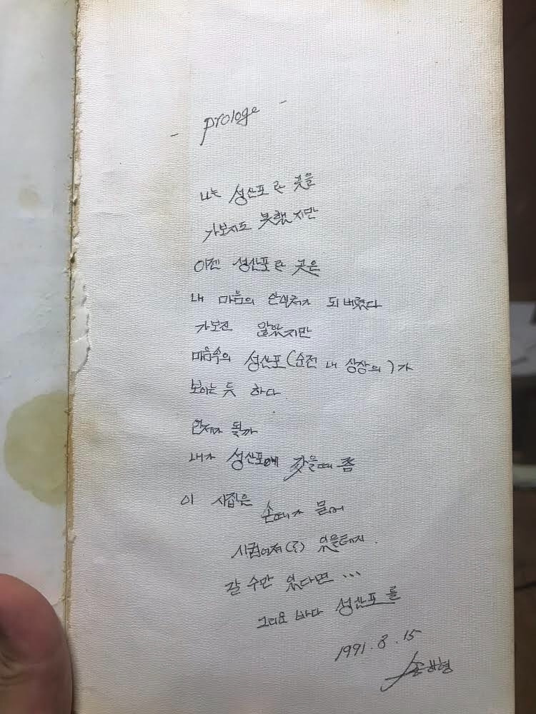 또다시 시간이 지나 1994년이었던가 1995년. 두 사람이 연애한 지도 어느 덧 4-5년이나 흘렀을 때 정확한 이유는 모르겠지만, 아빠는 손수건 한 장만을 남기고 도망쳤다. 당신을 속인다는 죄책감을 더이상 견딜 수 없어... 로 시작하는, 17년 뒤 장갑 한 짝을 찾던 딸이 옷장 구석에서 발굴하고선 당황하게끔 만드는 짧지만 구구절절한 편지가 쓰인 손수건에는, 사실 그의 이름이 송하형이 아니라 "이현철"이라는 사실이 쓰여 있었다. 모종의 이유로 군에서 탈영한 아빠는 (엄마 옆에는 왜 이렇게까지 탈영자들이 꼬이는 걸까?) 연고도 없는 울산으로 무작정 내려와 자신이 좋아하는 음악 DJ 일을 시작한 것이다.