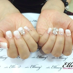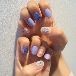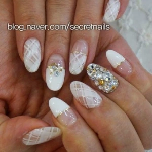 올드 중 누군가가 파츠 가득한 네일을 하고 있다.