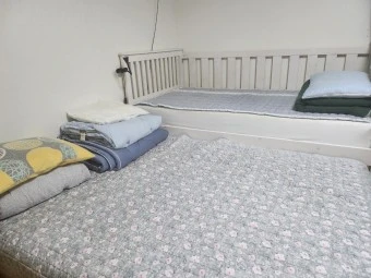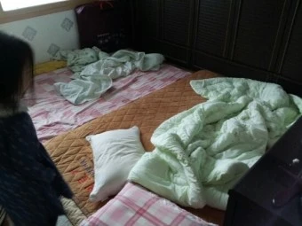 " 앞으로 이부자리 정리는 하고 나오자. 이상태로 뒷사람이 들어와서 보면 좀 그렇지 않을까?"