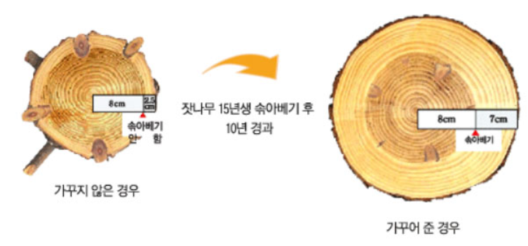 숲가꾸기 사업 이전 vs 이후 (자료 : 산림청)