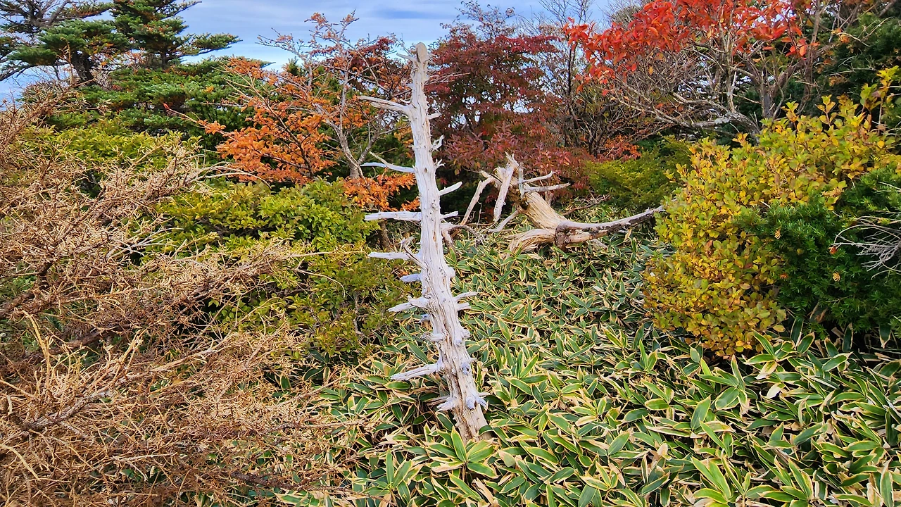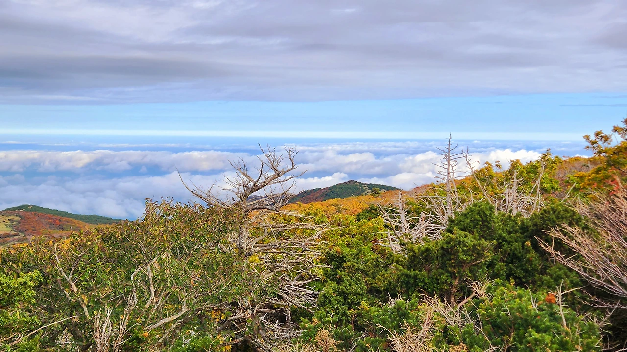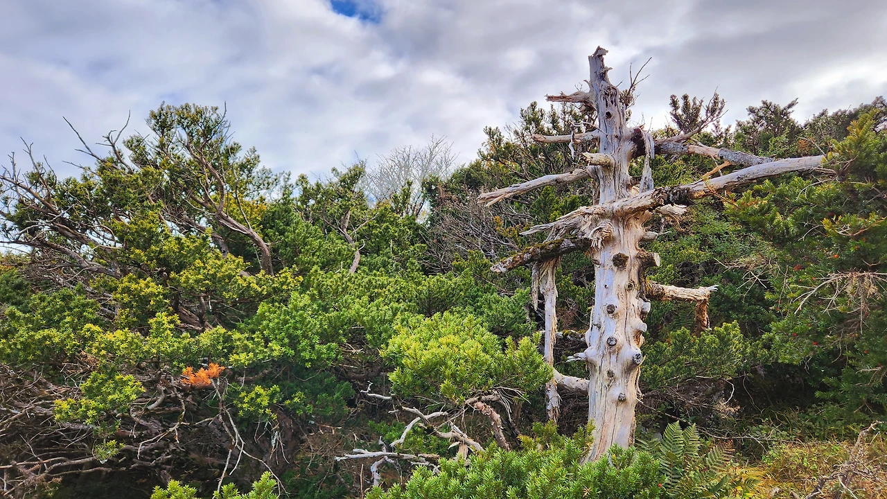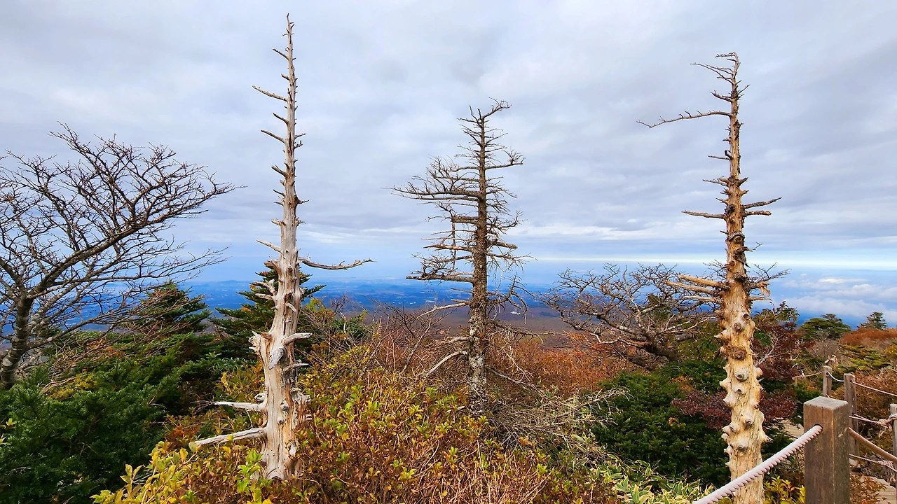 한 시간 정도 산행 후 해발 1,600m 고지에 도착했습니다. 여기에는 구상나무 군락지가 있습니다. 그리고 그곳엔 지구온난화와 기후변화의 슬픈 증거인 구상나무 고사목이 기다리고 있었습니다.