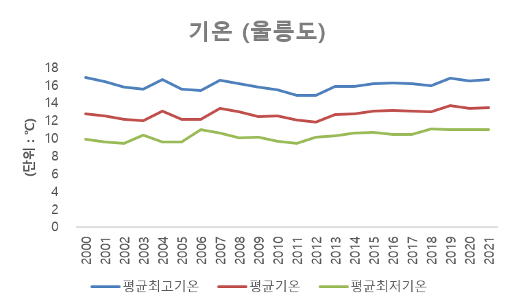 울릉도 관측소 기온 변화 (자료 : 기상청)