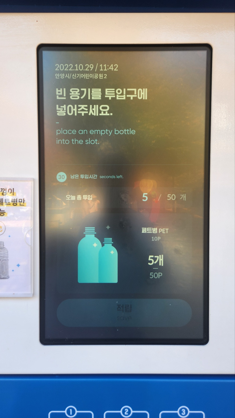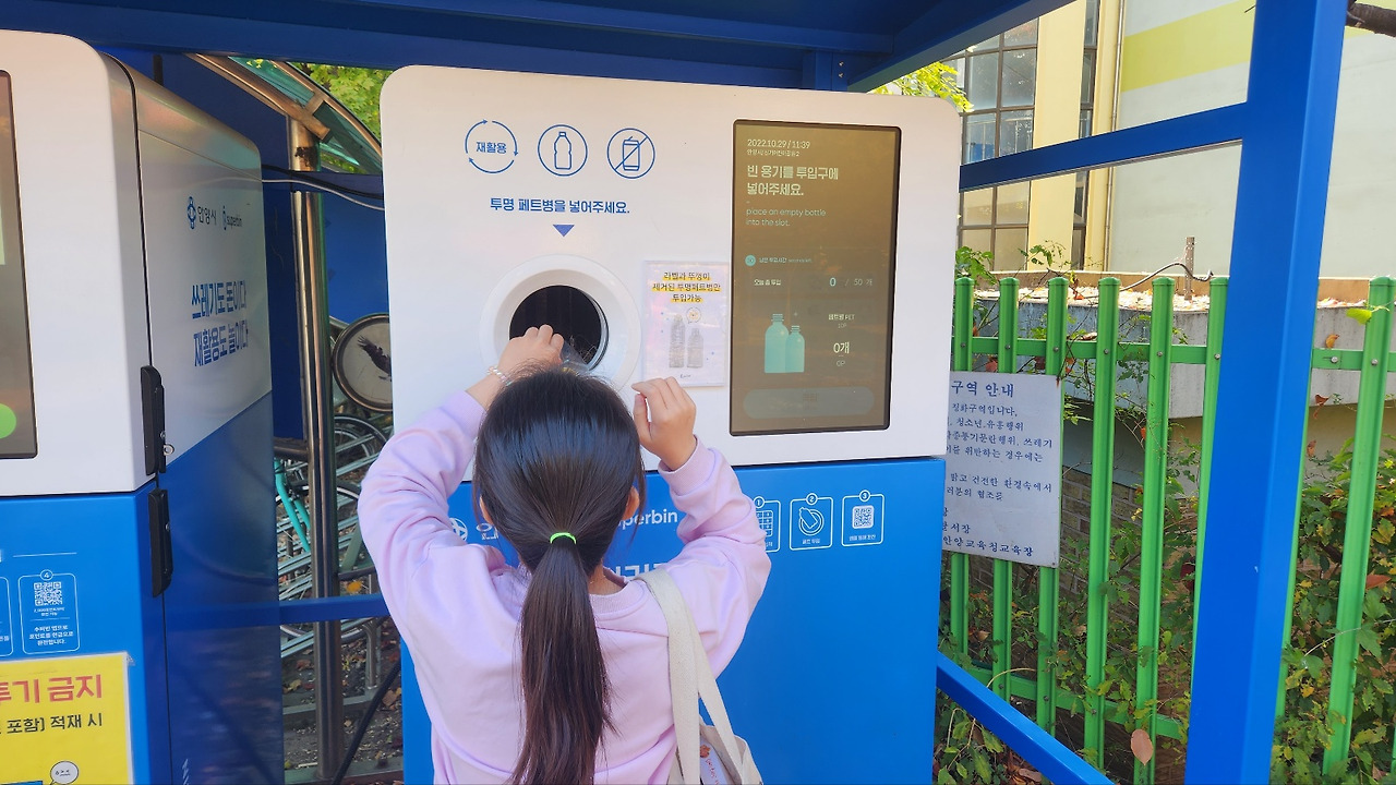 (요즘도 가고 있으나) 주말에 아이들과 같이 그동안 모아둔 페트병을 회수시키러 갔습니다. 로그인 단계서부터 아이가 하나씩 해보도록 했습니다. 가져간 투명페트병의 뚜껑을 제거한 뒤 페트병을 손으로 눌러 압축시켜 하나씩 넣기만 하면 됩니다. 만약 회수할 수 있는 페트병이라면 바로 다음 페트병을 넣으면 됩니다. 혹시나 남은 음료나 이물질 등으로 인해 ‘투입이 불가능’하다고 나오면 이물질을 제거 투입하시면 됩니다.