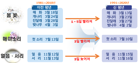 신 평년 계절관측 분석 (자료 : 기상청, 2021a)