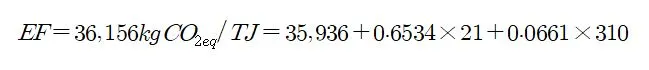 아래의 식에서 21과 310을 곱해주는 이유는 전력 배출계수와 마찬가지로 지구온난화지수를 고려하는 것입니다.