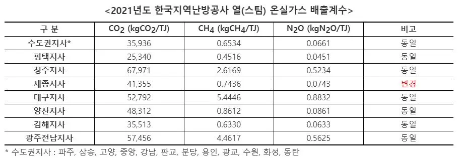 한국지역난방공사에서는 매년 자신들이 공급한 스팀에 대해서 소비자가 간접배출량을 산정할 수 있도록 매년 고유의 스팀 배출계수를 만들어서 홈페이지에 공개합니다.