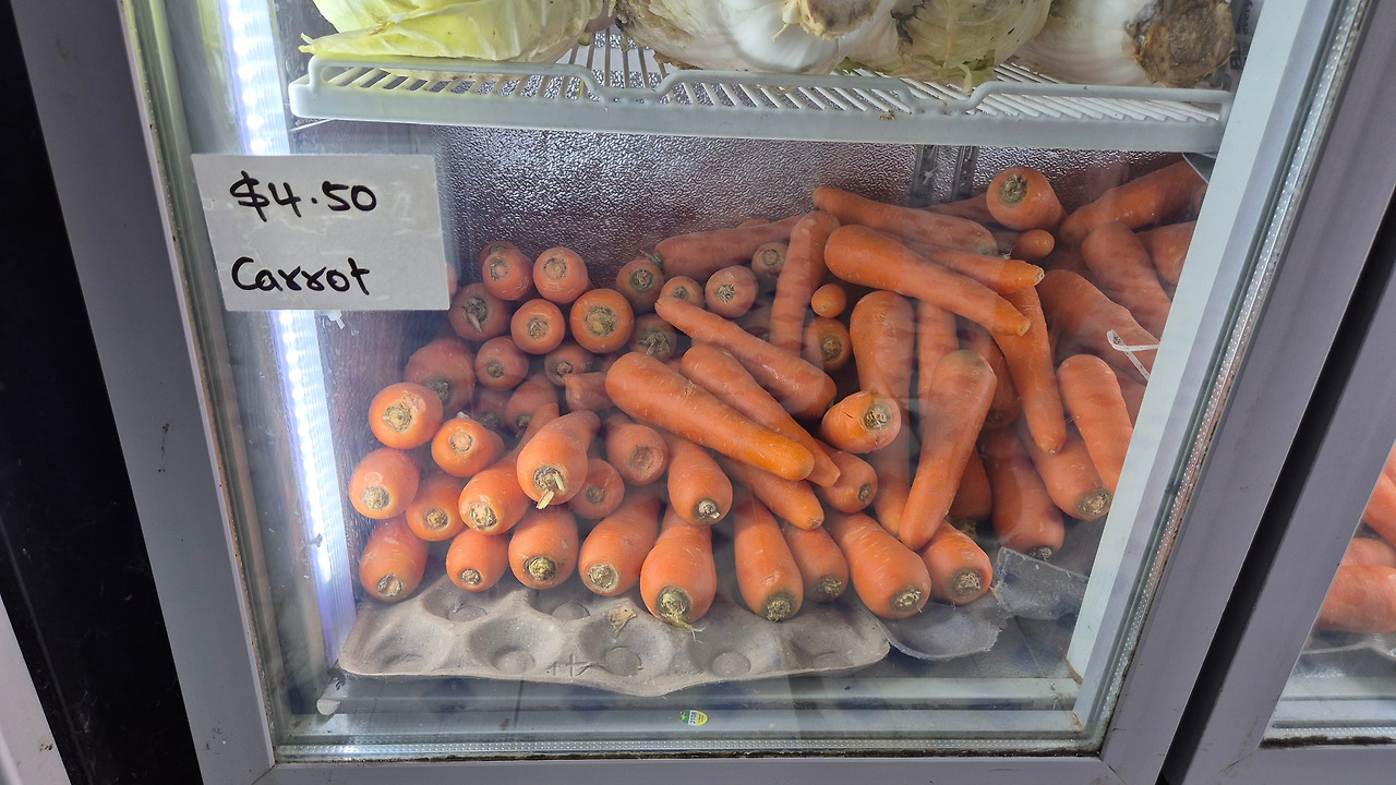 어느 날 Jimmy Store에 방문했다. 이날은 ‘수입산’ 물건이 들어왔는지 출입구 근처에 계란이 수북이 쌓여있었고 냉장고도 신선식품으로 가득 차 있었다. 물가를 조사했다. 당근은 1kg에 4.5호주달러(4,500원), 감자는 1kg에 4호주달러(4,000원)이었고, 오렌지와 사과는 둘 다 1kg에 7.5호주달러(7,500원)였다. 연간 1인당 GDP가 6,113달러(약 800만 원) 상황에서 매일 식재료를 사는 것은 경제적으로 무리가 될 수밖에 없다.