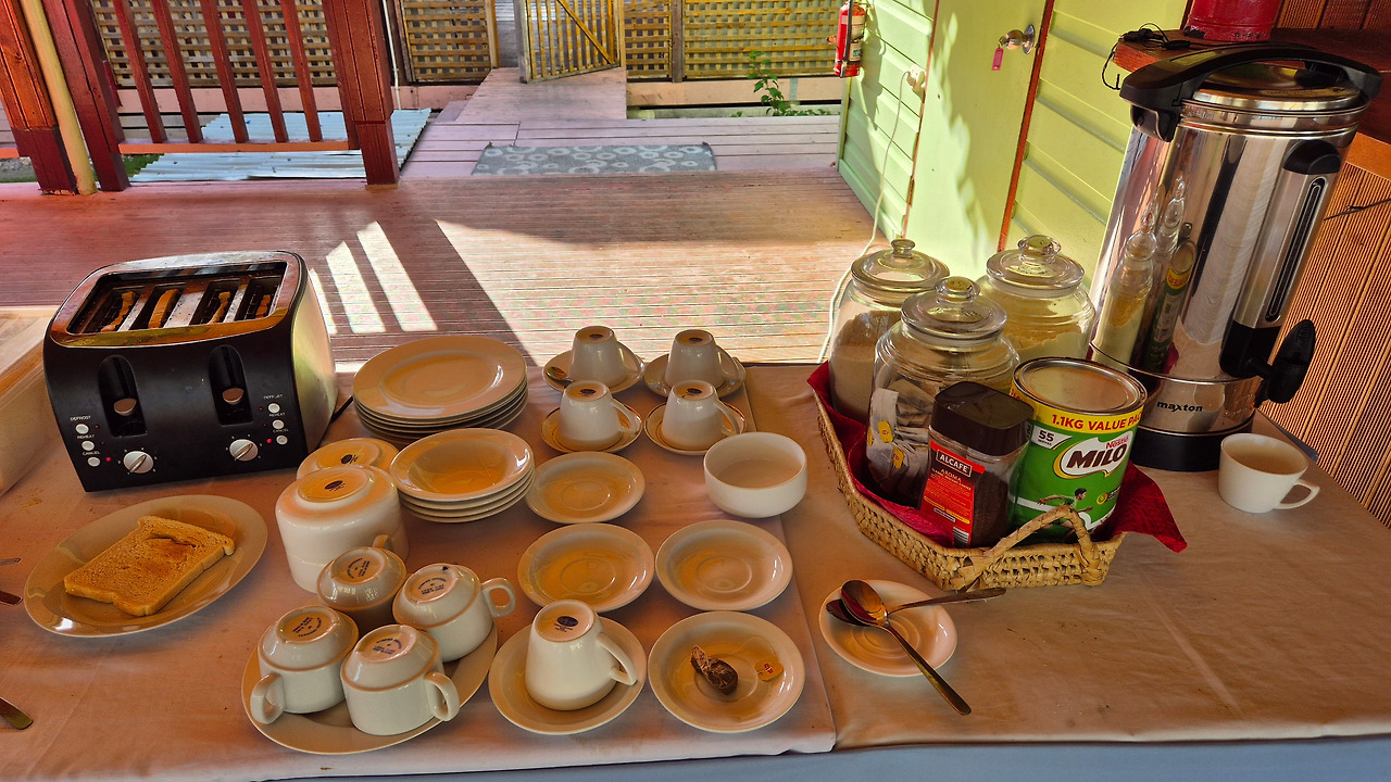 매일 아침은 호텔에서 제공하는 간편 식빵으로 때우고, 저녁은 호텔에서 해결했다. 그래도 투발루에 있는 동안에는 점심은 투발루에서 있는 현지 식당을 갔다. 그래봤자 투발루에 도착하는 날을 포함하여, 출발하는 날을 제외하고 여섯 번밖에 없었다.