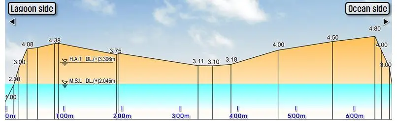 환초섬도 보호하면서 거주지로 쓸 수 있는 땅을 늘리는 계획이다. 매립을 위해 모래는 석호 안쪽에서 준설선이 모래를 퍼내어 해안가를 매립하고 있다. 멀리서 재료를 수입하지 않아도 된다. 해안 정비 사업지는 해안선으로부터 100m 너비를 가지고 있다. 매립 이전에는 주택들이 해안선에 붙어 있었는데, 이제는 해안선이 주택가로부터 100m 정도 뒤로 물러나게 됐다. 그리고 사업지의 바닷가 쪽 끝은 해안선으로부터 높이가 2m나 된다. 해안 정비 사업지 덕분에 해안선의 끝도 멀어졌고, 2m나 되는 제방이 생겨 킹 타이드가 몰려와도 침수의 염려는 적어진 것이다. 해수면 상승이라는 원인을 제거하지는 못하지만 그래도 당분간은 살 수 있는 환경이 됐다.