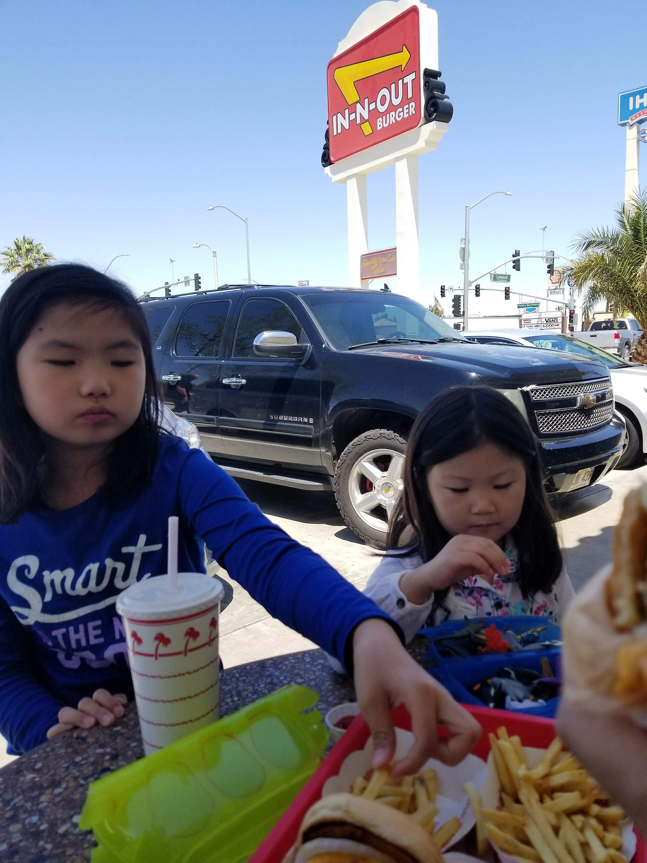 운전하는 동안 도로에 지나가는 차는 한두 대가 전부였는데 햄버거 가게의 주차장은 어디서 나타났는지 모를 차들이 빼곡히 들어차 있었고 가게 안도 마찬가지였다.