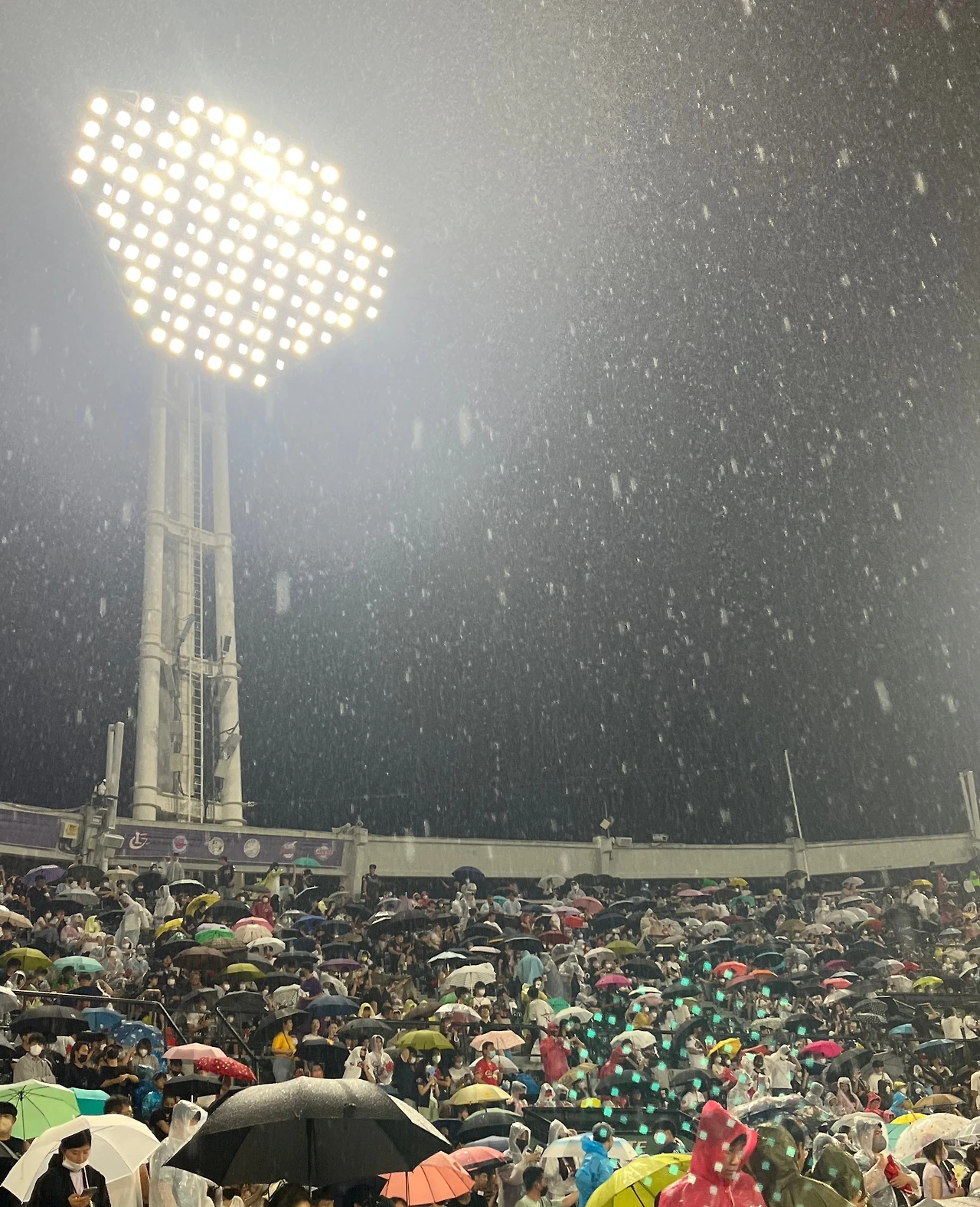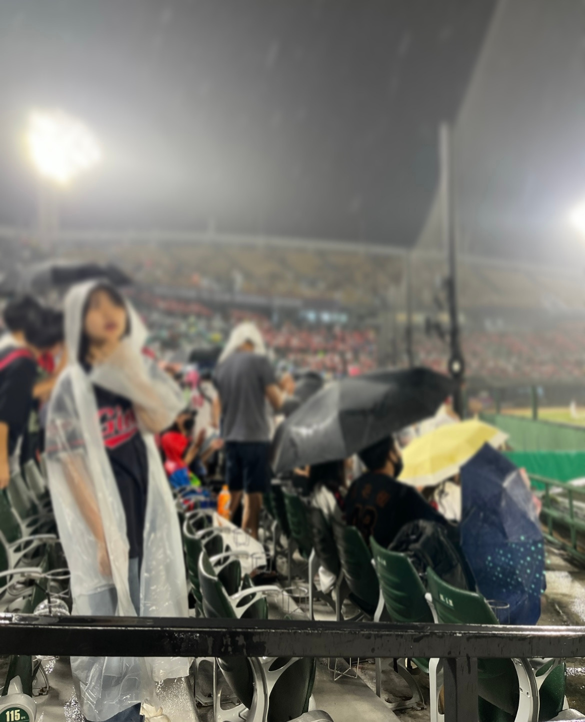 비 소식에 경기가 취소될지도 모를 일이었는데 다행히 경기는 진행되었고 우리는 신나게 간식거리와 맥주를 샀다. 하지만 이내 시작된 비에 치킨과 감자튀김은 물에 젖었고 맥주는 빗물과 섞여 버렸다. 노아웃, 주자 만루 상황에서 1점 득점하고 모두 아웃되자 ‘롯테이’ 를 외치던 외국인 무리들은 자리를 털고 가버렸다.