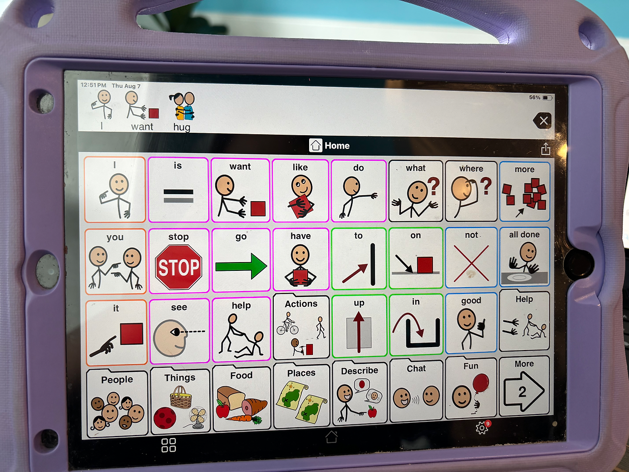 화음이는 AAC(Augmentative and Alternative Communication)라는 언어지원 디바이스를 사용한다. 단순한 이미지들로 이루어져 있고 여러 카테고리로 나누어져 있다. 아이는 3살 이후로 줄곧 이 디바이스를 사용했고 제법 익숙하게 사용할 줄 알게 되었다. 학교와 집, 교회에서도 같은 이미지를 사용하고 있다. 화음이의 언어 치료의 목표는 디바이스 사용 빈도를 늘리고 구사할 수 있는 표현들을 늘려가는 것이다.