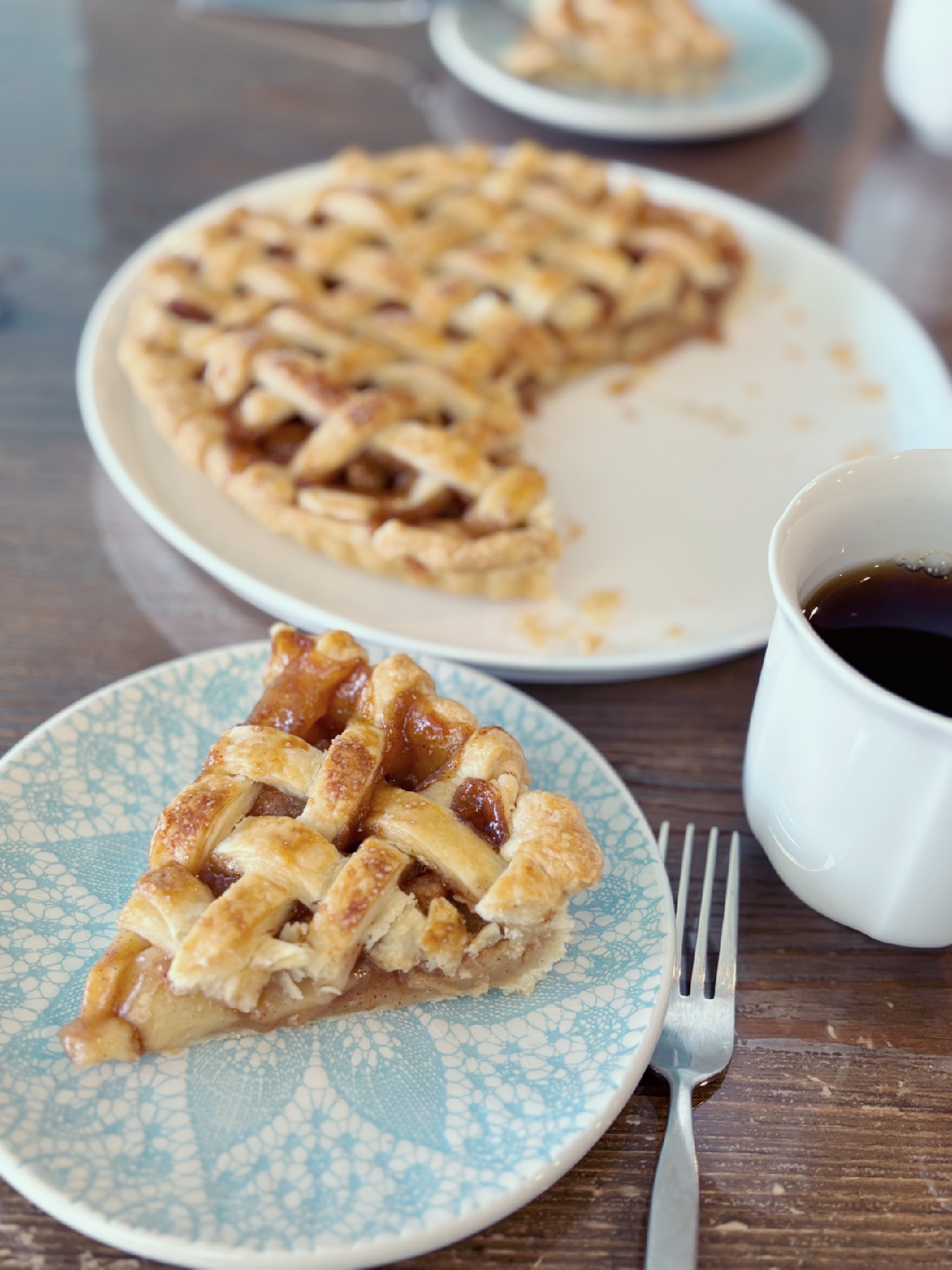 “이렇게 예쁜 사과파이를 구워서 예쁜 그릇에 담아 커피도 한 잔씩 따라 놓고, 경쾌한 피아노 재즈 음악도 틀어 놓았는데. 이 우아한 분위기에 오빠랑 나는 세수도 안 하고 머리는 떡진 채로 마주 보고 있다는 게 너무 아이러니 아니야?”
