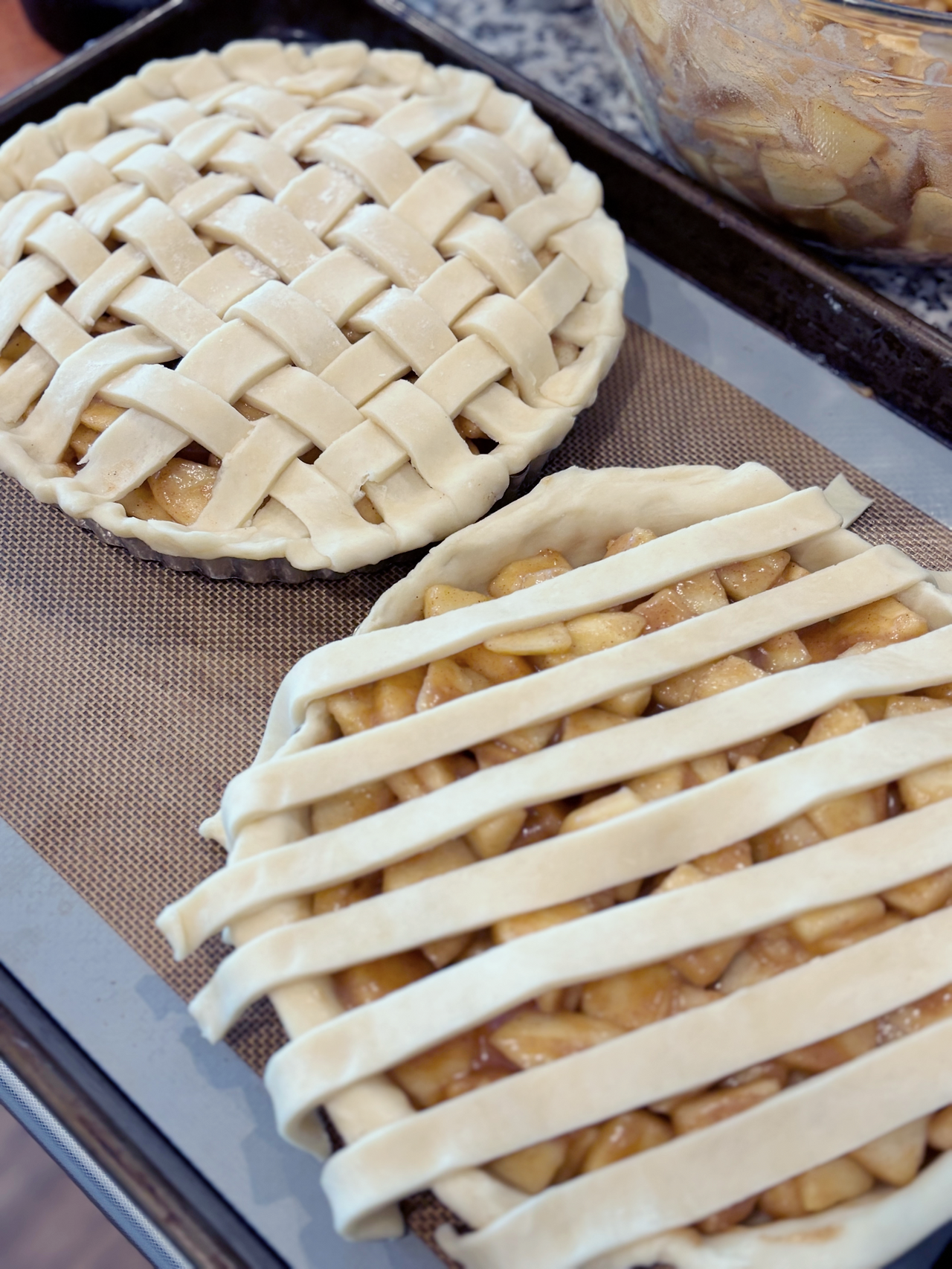 마침, 얼마 전 지인으로부터 선물 받은 싱싱한 사과 한아름이 있었다. 무려 필라델피아 어느 농장에서 갓 따온 사과라고 했다. 그냥 먹어도 아삭아삭 너무 맛있는 사과이지만, 우리 가족이 며칠 안에 다 소비하기에는 좀 많은 양이었다. 냉장고에서 껍질이 쭈글해진 채로 퍼석하게 변해가는 사과를 눈으로 보게 될 바에야 향기로운 파이를 구워내는 것이 여러모로 생산적일 것 같았다. 가을도 무르익었겠다 얼마 전부터 사과파이 노래를 부르던 큰 딸의 요청도 있었겠다, 마침 넉넉하게 준비된 사과도 있으니, 오랜만에 파이를 구워본다.