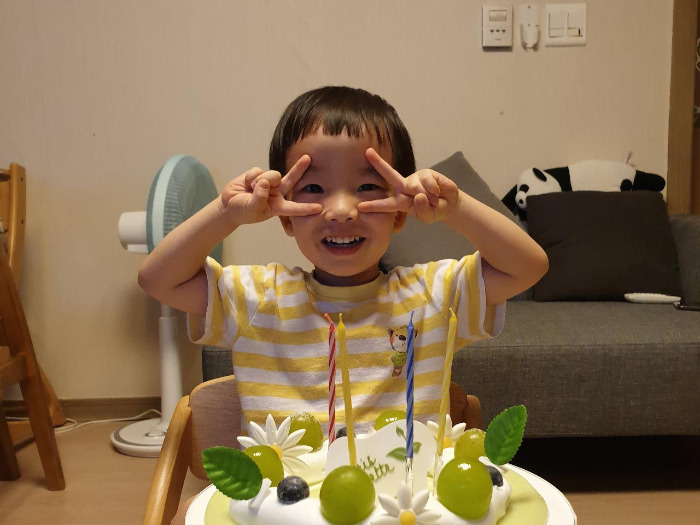 오후를 보낸 우리 가족은 저녁을 먹고 드디어 촛불 끄기 행사에 들어갔고 두 형제는 서로 초를 끄겠다고 난리를 치며 미국에서 수입된 생일 축하송을 부르고 촛불을 끄고난 후 케이크를 조금씩 나눠먹고 긴 하루를 마감했다. 흥분이 가라앉지 않아서 인지 재우기 넘 힘들었다. 그래서 이글도 다음 날로 이어지고 있다. 일긴데 ㅎ