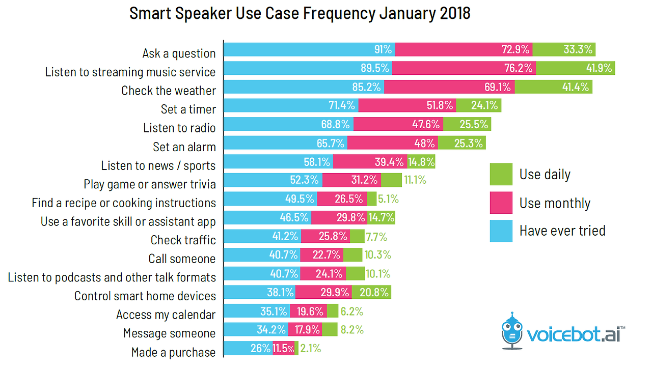 미국의 사정은 좀 다른 거 같다. ‘Voicebot Smart Speaker Consumer Adoption Report 2018’