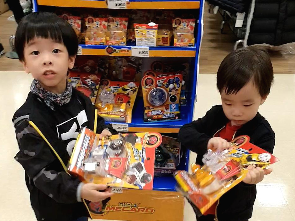 진앤준 브라더스는 본의 아니게 마케팅 일기의 준주연이 되었다. 오늘도 어김없이 등장~ 추석 연휴 동안 엄마가 아파서 힘들어했는데 연휴 마지막에도 썩 좋아지지 않아서 두 형제를 집에 두기엔 엄마에게 큰 스트레스였다. 그래서 이 형제를 데리고 영등포 타임스퀘어로 향했다. 계획은 이랬다. 이마트 장난감 코너에 우선 풀어둔다. 들어가기 전에 오늘 사는 것은 없다고 다짐을 받고 구경만 하기로 한다. 그리고 한 시간쯤 돌아다니면 기운도 빠지고 배도 고플 터 그러면 같은 층에 있는 발재반점에 가서 찹쌀 탕수육과 짜장면 하나를 시켜서 탕수육은 둘이 다 먹고 짜장면의 일부는 내가 먹는다. 그러면 대략 3시간 정도가 지난다. 왕복하는 시간까지 하면 4시간, 거기다 돌아오는 차에서 이 개구쟁이들이 잠들면 금상첨화였다.