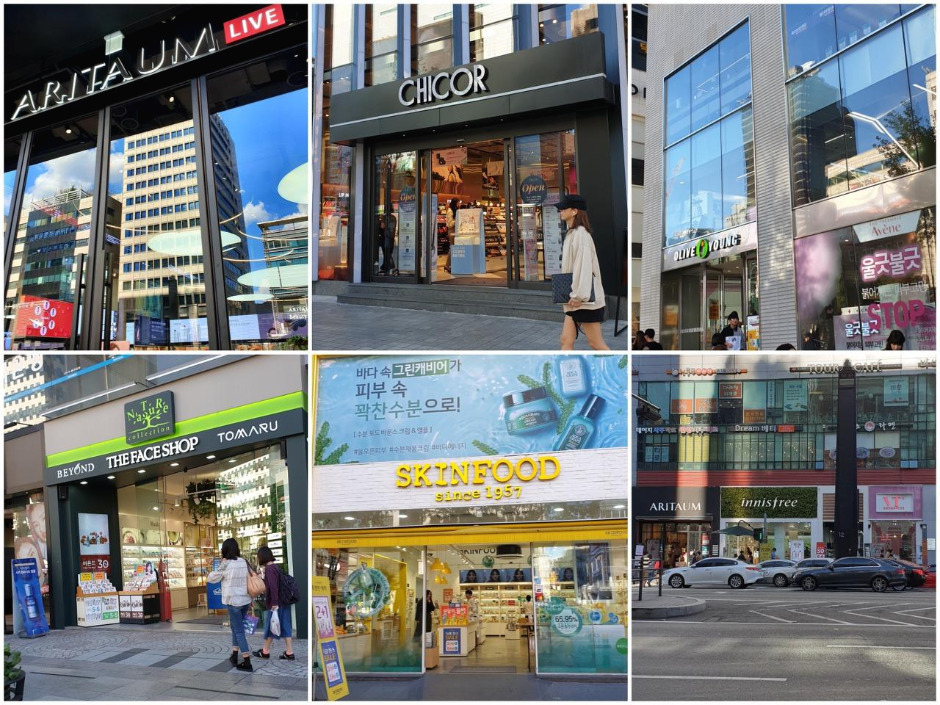 신논현역에서 강남역까지 걸으면서 각 매장의 특징을 살펴보았는데 일반 브랜드샵에는 이미 소비자들의 발걸음이 뜸한 것이 밖에서도 보였다. 평일 오후라고 하지만 올리브영이나 시코르에는 사람들이 꽤 많았다.