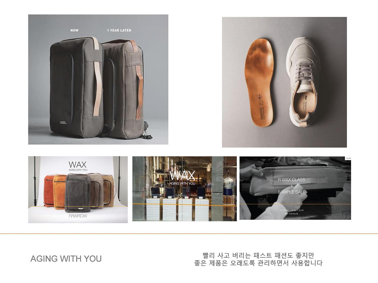 바로 본질만 남겨놓은 제품을 만든다는 로우로우다. 영어로는 RAW(쌩) ROW(열, 횡), 일상에 꼭 필요한 생활잡화를 만든다는 철학으로 가방을 만들기 시작해서 운동화, 안경까지 만들었고 가장 최근 제품으로는 R Trunk를 만들어서 인싸 사이에 화제가 되기도 했다.