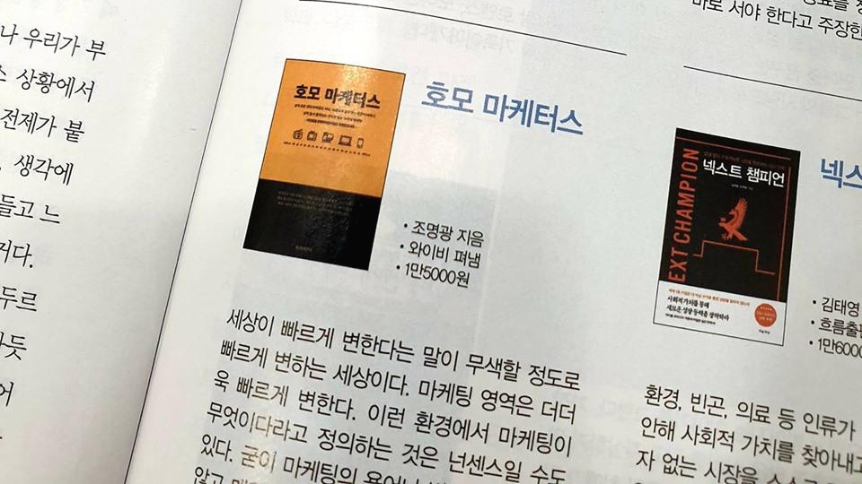 18년 8월 24일부터 10월 26일까지 주 6일 9주간 52일 동안 쓴 마케팅 일기를 바탕으로 브런치에 <호모 마케터스>가 지난 5월 23일 세상에 나왔다고 알려 드린 바 있습니다. 그래서 기쁜 마음으로 책 출간 소식도 알리고 일부 미디어에서 언급된 내용을 언급해 드리기도 했습니다. <더피알>이라는 커뮤니케이션 미디어에 소개되기도 했고, 경제지 <머니 S> 신간에 소개되기도 했습니다. 책 속에 브런치에 대한 이야기도 빠짐없이 소개했고요.