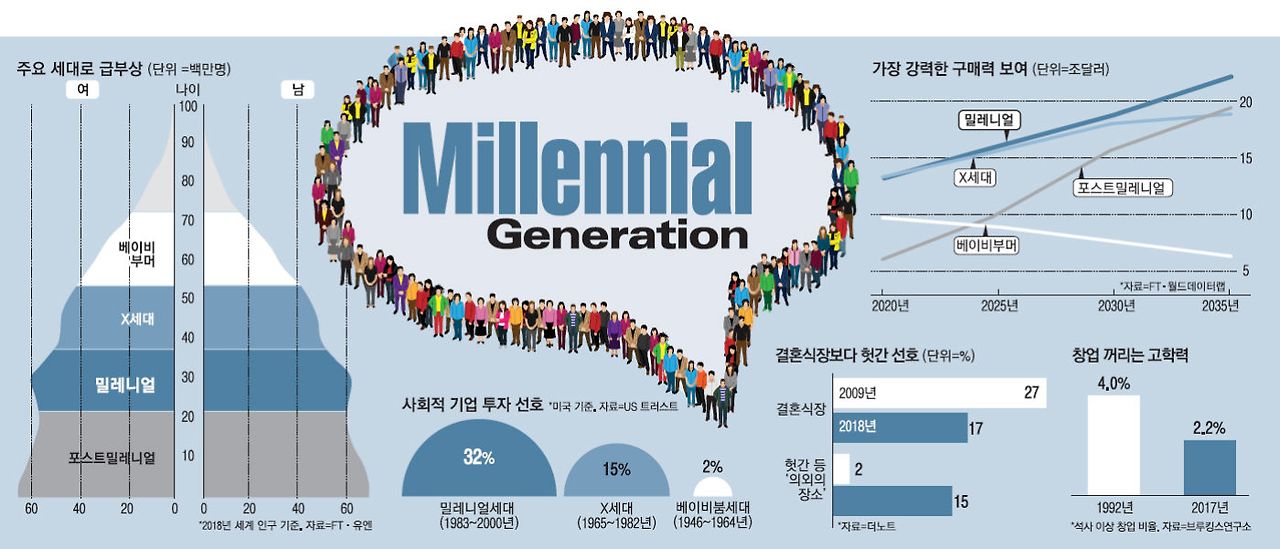 <기사 제목이 밀레니얼 세대 `대세`…"잡으면 살고 놓치면 죽는다" 출처 : https://www.mk.co.kr/news/world/view/2019/02/71991/>