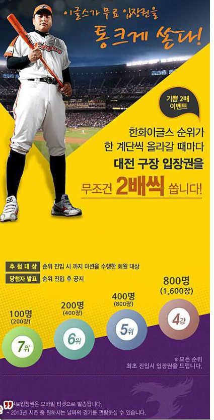 “OOOOO 순위가 한 계단씩 올라갈 때마다 대전 구장 입장권을 무조건 두 배씩 쏩니다“