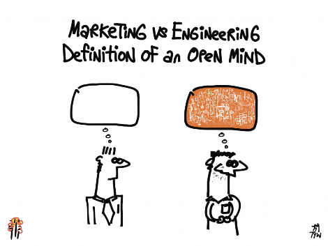 변화를 받아들일 마음을 가지고 있다는 것은 열린 자세를 가지고 있다는 것이다. 다만 열린 자세라는 것은 태어나는 것은 아니다. 누구나 스스로 방어하려는 기제가 있다. 방어하려는 마음은 곧 닫힌 자세를 자연스럽게 만든다. 오픈마인드를 가진다는 것은 내 것에 대한 자부심도 일부 내려놓아야 한다. 사실 마케터에게 자신의 것이란 없다. 특허를 가지는 것도 아니고 마케터는 시간과 돈과 사람으로 일 하는 사람이다. 기술자도 아니고 과학자도 아니다. 사실에 입각하여 실험에 의해 성과를 만들어 내지 않는다. 자신의 것이 없다는 것은 반대로 모든 것이 자기의 것이 될 수 있다는 것이다. 오픈 마인드는 아이디어를 수집하고 수집된 아이디어는 아이디어를 생산한다. 오픈 마인드는 계속 재생산을 하는 공장과도 같다.