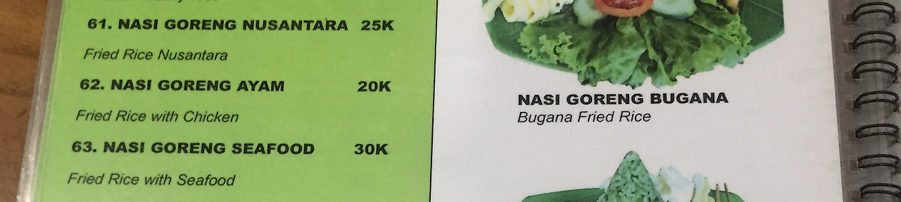 제가 주문했던 것은 ‘나시고랭 아얌’ ‘닭고기 볶음밥’이라는 뜻으로 닭고기를 좋아하시는 분들은 ‘아얌’ Ayam이라는 단어를 알아가신다면 더 좋으실 것 같습니다. 우리나라 사람 입맛에 딱 맞았던 ‘나시고랭 아얌’ 은 한화로 1500원 정도로 아주 저렴한 가격입니다. 양을 보시면 절대로 이해가 가지 않는 가격이었습니다. 나중에 알게 된 사실이지만 현지인들은 더 싸게도 먹는다고 합니다. 요리 5 가지를 시켜도 만원이 넘지 않는 착한 가격에 맛있는 식당은 저에게 다음에 또 가야 할 맛집으로 남았습니다.