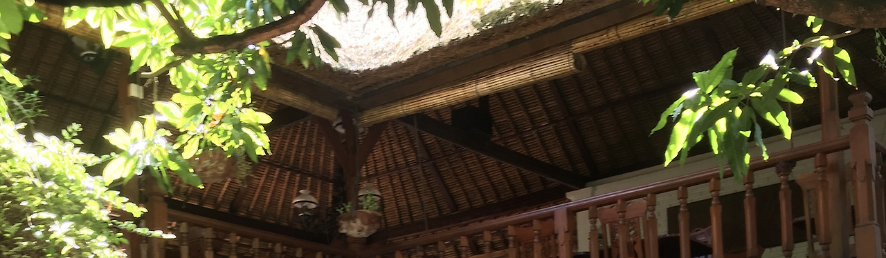 카페 안은 발리 건축의 특징을 그대로 가지고 있었습니다. 발리 전통 건축물은 자연과의 조화를 이루고자 하는 마음에서 비롯되어 대부분의 재료를 자연에서 가져다 쓴다고 합니다. 대나무, 코코넛 또는 티크의 나무를 주 재료로 하고, 코코넛이나 야자(종려) 나무의 마른 잎을 천장을 구성하는 재료로 쓴다고 합니다. 발리니즈 건축양식에 식물을 제외하고 많이 쓰이는 재료가 있다면 바로 돌입니다. 깎아서 조각 등으로 장식하는 데에도 쓰이지만 그대로의 모습을 가져다 담이나 계단, 정원 등을 만들기도 합니다. 제가 갔었던 카페에도 나무와 돌을 대부분의 재료로 하는 것을 볼 수 있었습니다. 한국의 전통 건축양식에도 자연과 조화되고자 하는 양식을 많이 볼 수 있는데 같은 생각이지만 재료의 차이가 보여주는 이국적인 모습이 참 재미있어 오래 앉아 실컷 구경을 했습니다.