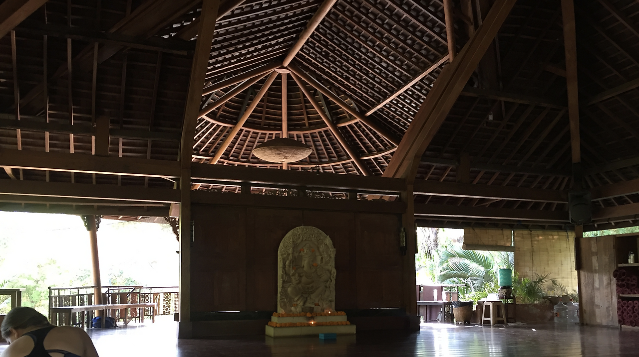 요가반은 2층 건물로 1층에는 메인 리셉션과 기념품점 그리고 하나의 스투디오가 있습니다. 2층 에도 하나의 큰 스투디오가 있는데 건물 자체가 나무로 되어있고 개방되어 있습니다. 1층 스투디오는 반 개방의 형태입니다. 굉장히 재미있는 구조로 되어있어 설립자의 의도가 살짝 궁금해 집니다.