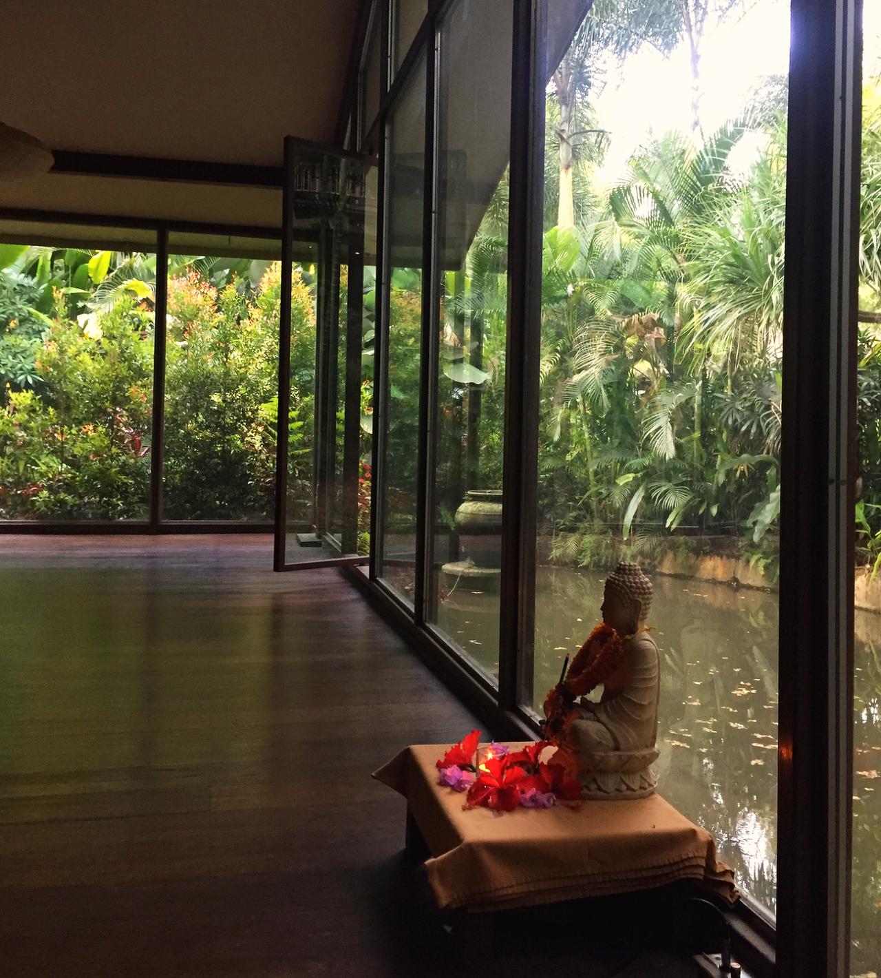 음은 정적인것, 그러니까 인요가는 정적인 요가입니다. 자신의 신체를 천천히 느끼며 스트레칭 하고 몸을 푼다 라고 생각하면 더 좋을 것 같습니다. 해질녘 쯤 시작된 요가를 시작해 어두워져서야 끝났는데 정말 특별한 경험을 했습니다. 1층에 위치한 요가실은 통유리로 안과 밖을 서로 볼 수 있습니다. 또 창문이 반쯤 트여있는 공간이라 바깥과 구분되면서도 함께 하는 공간입니다. 스트레칭으로 시작해, 천천히 빠져들다보면 해가지고 천장의 조명이 켜집니다. 요가에 집중할 수 있도록 조도가 매우 낮은 조명이 공간을 영화 아바타 처럼 만듭니다. 누워서 천장을 바라보면 설명할 수 없는 꿈을 꾸는 느낌이라 그 순간만큼은 아무 걱정없이 힐링할 수 있었습니다.