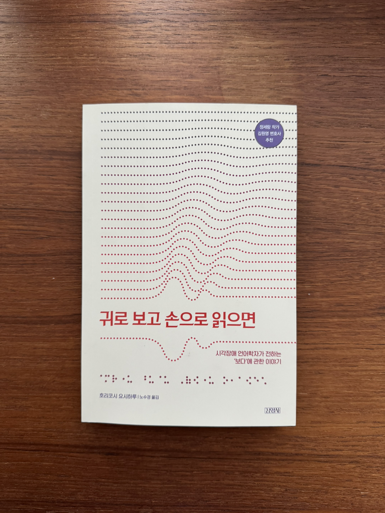 곧 있을 아이들 대상 강의를 준비하며 <귀로 보고 손으로 읽으면>을 읽던 중이었다. 저자는 남편과 같은 전맹으로 평생을 빛도 없는 세상에서 살아왔다. 해당 꼭지에서 그는 ‘들리지 않는 세상’이 자신을 얼마나 답답하게 하는지 설명하고 있었다. 지하철에서 자리를 양보해 준 사람이 너무나 겸손해서 끝까지 목소리를 내지 않으면 대체 누구에게 감사를 표현하겠느냐 하는 일면 귀여운 에피소드.