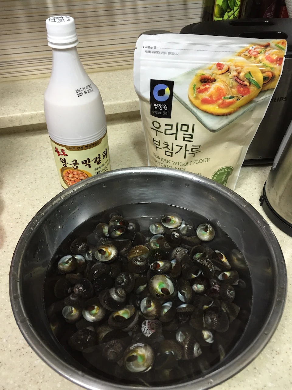 보말부침개를 해먹으려 했으나 셋 다 뻗어 버렸음..