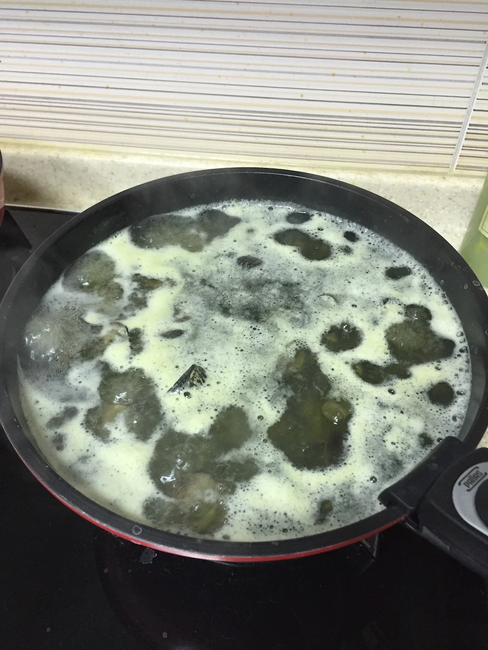 보말을 삶을 때는 거품이 많이 나오는데 숟가락을 거품을 없애주는 게 깔끔하다