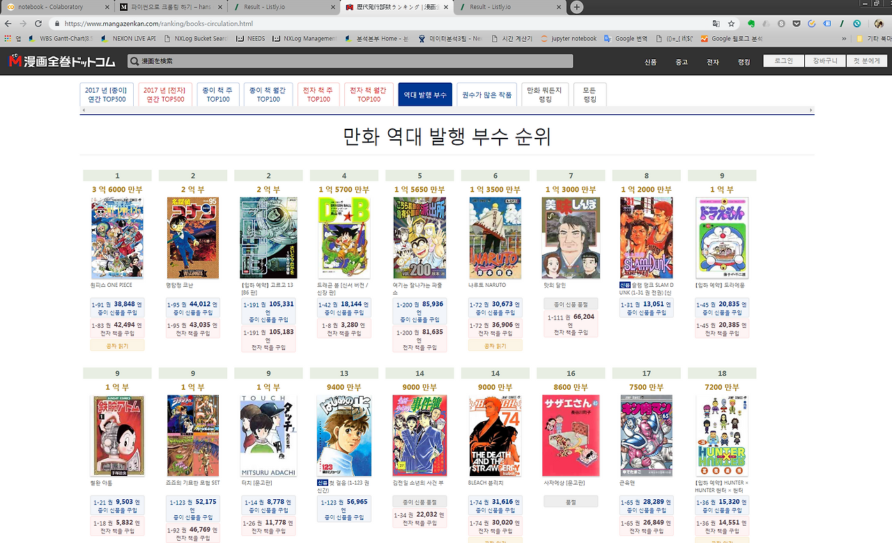 일본 출판만화 역대 발행 부수 데이터 파헤치기