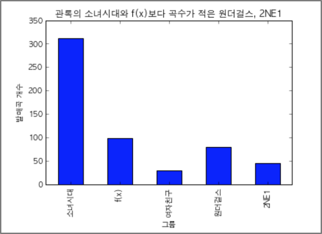 우선 각 그룹별 발매곡 수이다. 발매곡 수는 네이버 뮤직에 등재된 곡을 기준으로 했다.