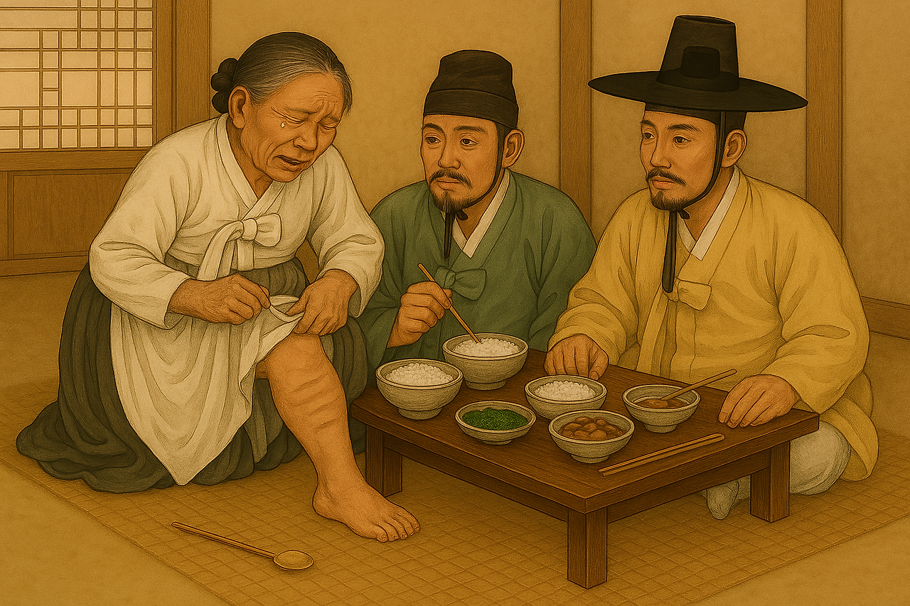 그런데 참으로 희유하게도 이 사건을 맡은 교리(판사)와 옥당(검사)은 형제지간이었고, 밥상머리에서 이 사건에 대하여 왈가왈부하게 되었습니다.