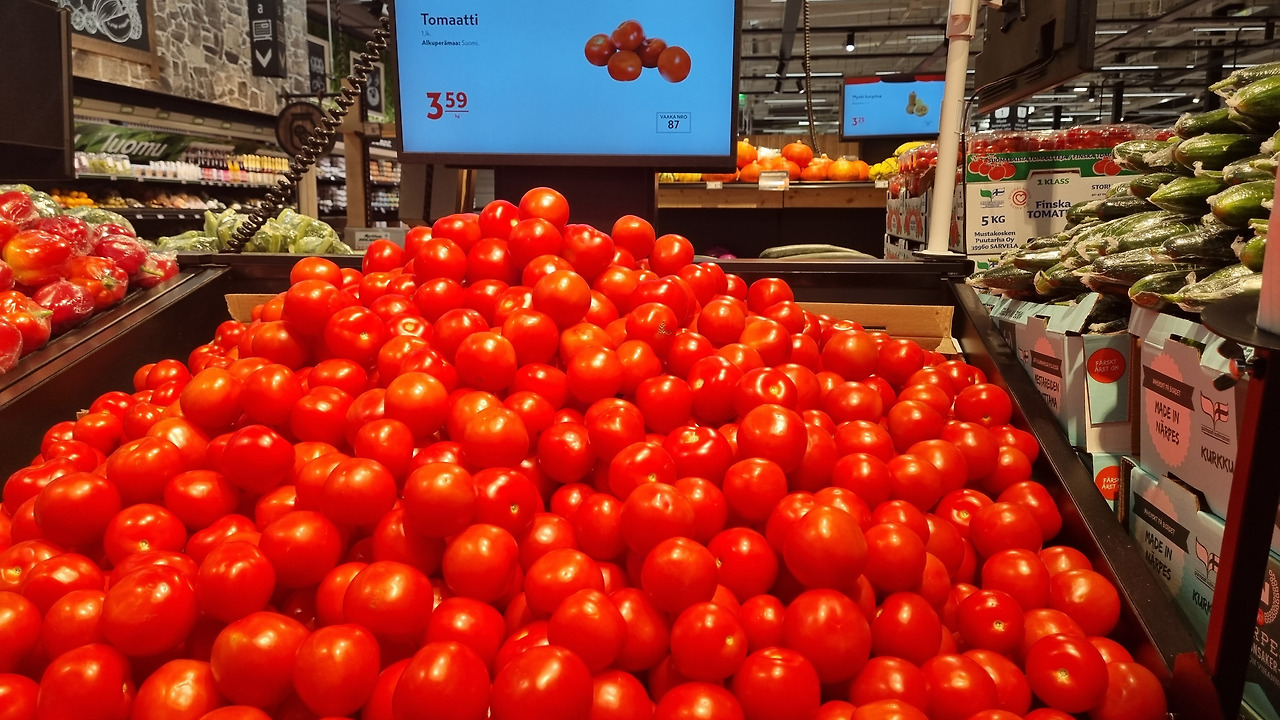 특히 쌓아놓은 토마토는 한 알 한 알 니스칠한 거니? 너무 반짝거려서 안 집고는 못 배기게 생겼다.
