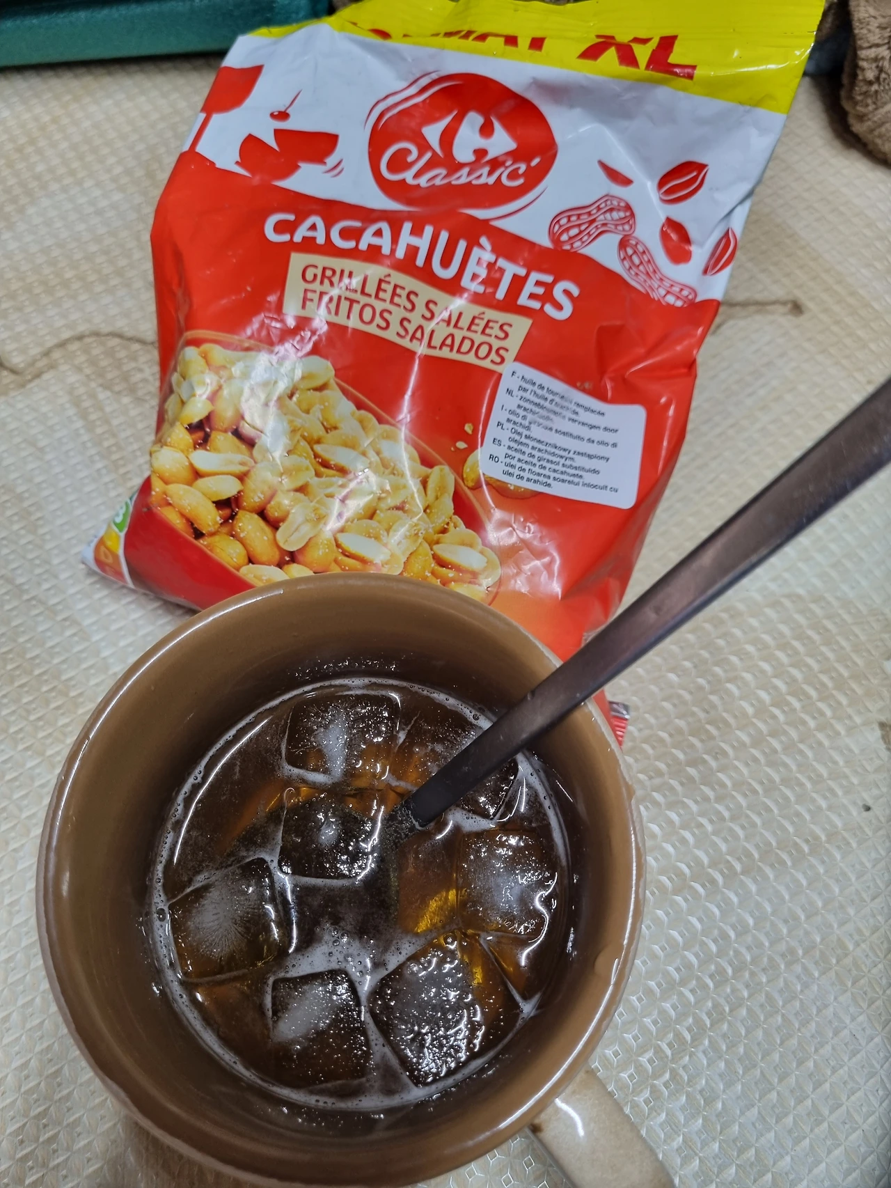 맥주에 얼음 동동 띄어 땅콩과 함께 쓰윽 내미는 첫째 어린이(숟가락도 넣었길래 맥주를 숟가락으로 떠먹는 귀한 경험을체험해보았어요.ㅋㅋ)♡ 차에서 사는 4 가족의 유랑 경로 ♡