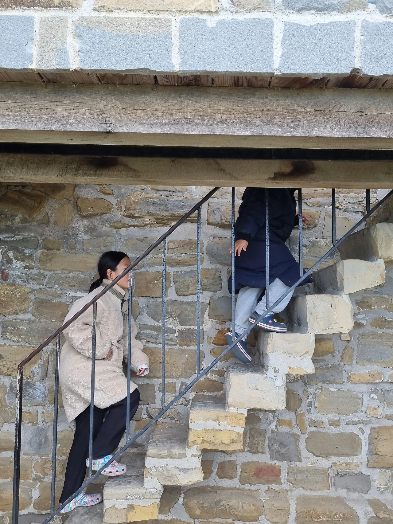'무한의 계단' 게임 실사판을 보는거 같아 한참 웃었다/ 주황색 삼각김밥마을이 바다를 향해 빼곡히 들이대고 있는 모습이 귀엽다(피란의 성벽 꼭대기에서 본 피란마을이다.)