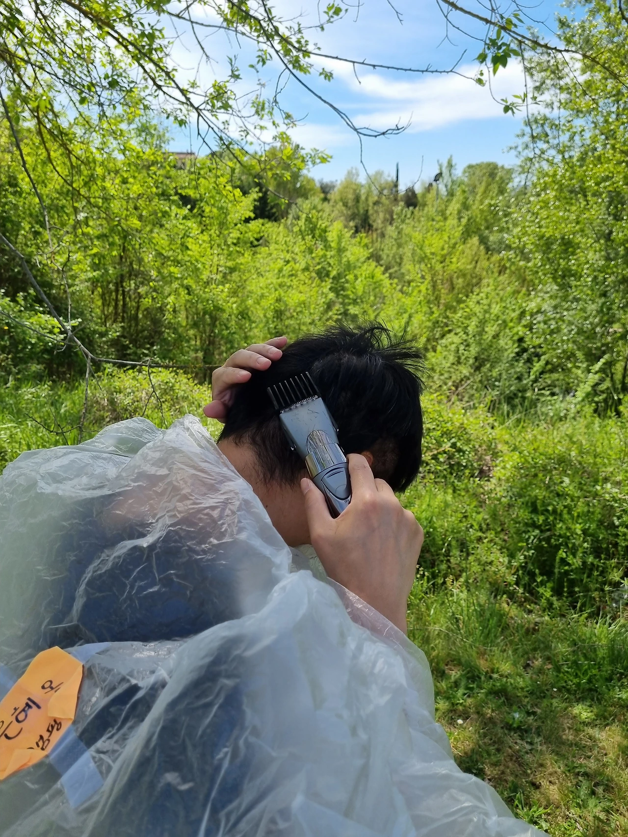 김기사가 직접 바리깡 들고 자기 머릴 미는 거 아닌가. 허거걱
