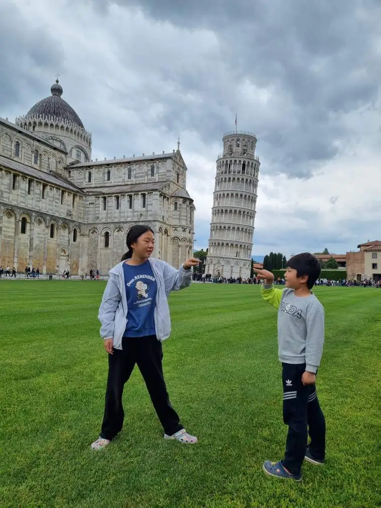 나폴리 못간 아쉬움을 나폴리피자로(in 로마) 달램~/ 우릴 보자마자 서브웨이 전단지를 건네며 한국말로 어눌하게 "직진직진 빨리빨리 곧장빨리"ㅋㅋ 안갈수 없게 만드는 저 테크닉! 애들이 가장 가고파 했던 '피사의 사탑'가는 날! 날씨 흐리다고 투덜투덜하길래 '먹구름도 사랑해보자' 했더니 더 화냄ㅋ / 더 삐뚤어진 반항아 사탑 메론맛 인줄 알고 초록알크림 골랐는데 "으앗! 이거 치약맛이야. 이빨 닦는거 같아" / 수도꼭지에서 몹시 못난 표정으로 수분흡수하는 뚜뚜. 덕분에 오늘도 빵 터진다. 지못미 뚜뚜 "엄마! 인간도 신이야! 세상에 없는 이런 멋진 걸 만들어내잖아" (밀라노 대성당 보자마자 뚜뚜가) /성당 대문에는 성경책 한권이 몽땅 녹아들어간 느낌이다. 타이어 그네와 원형 그네에서 엎치락 뒤치락 무지 아슬아슬하게 노는 놀이터 전문가 두분(BAM tree library Milan 보러 갔다가 바로 앞 놀이터에게(?) 잡힘) 손에 비누 가득인데 아무리 손을 휘저어도 물이 안 나옴.무릎으로 저 은구슬을 지그시 눌러줘야 함. 와 신세계!/ 호수 위 비둘기 털 위 또로록 물방울 보고 넘 신기해서 난리법석임 다른 나라의 트램과 달리 나무로 된 의자와 옛 전등을 사용하는 밀라노형 빈티지 트램(1877년~) 이다. 근데 소음까지 매우 빈티지형ㅋㅋ ♡ 차에서 사는 4 가족의 유랑 경로 ♡