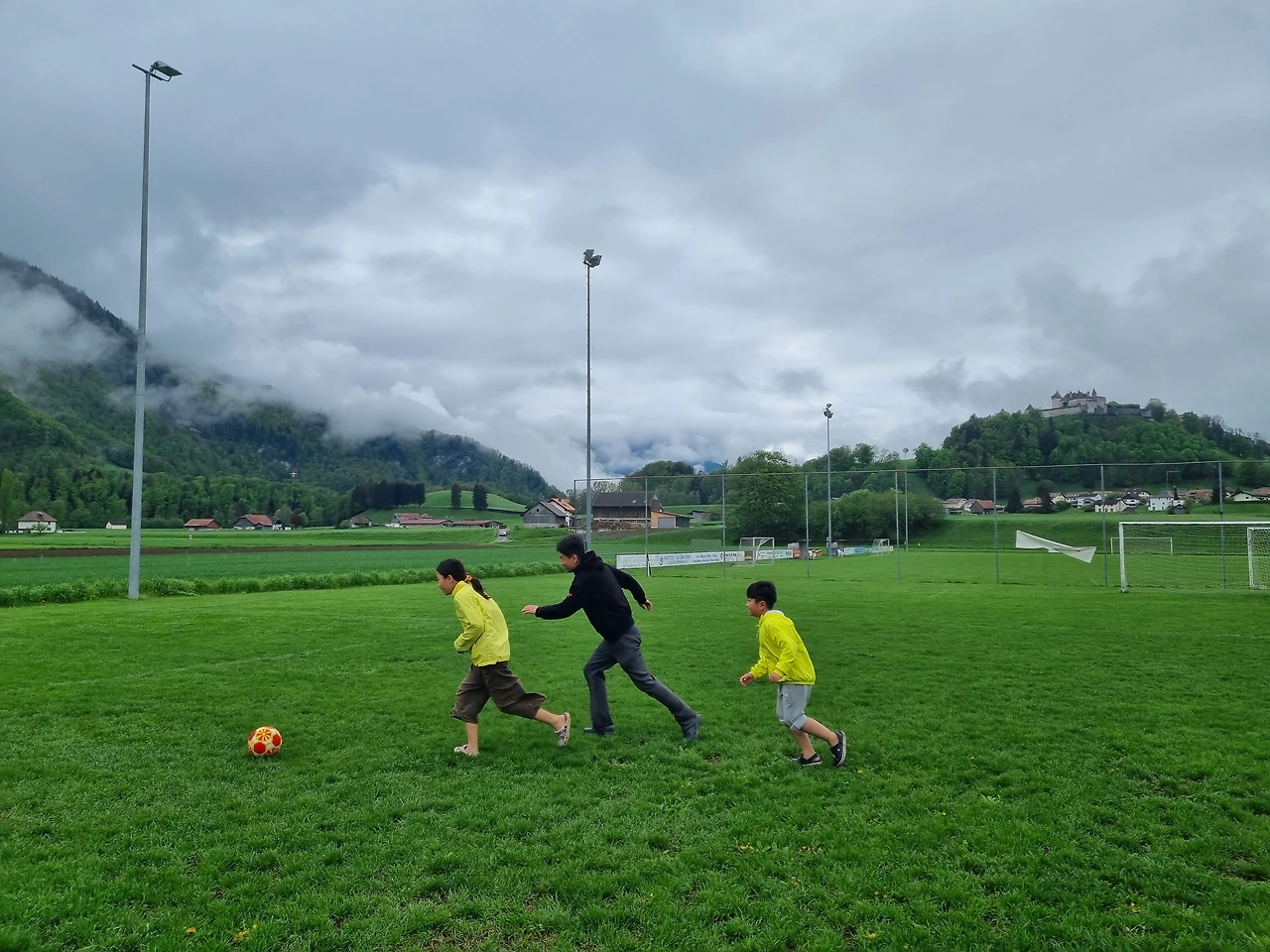 구글느님 도움으로 알게된 4개 언어 표기 (좌 :독어와 로먀슈어 / 우 : 프랑스와 이탈리아어) 비와서 기운이 솟는다며 날뛰는 강아지 뚜뚜다(수도역할을 하는 베른, 거리에 서로 다른 주기가 걸려있다. ) / 의회광장 대형 체스판에서 하루종일 놀고 "엄마! 내일 또 오자!" 푸르른 들판도 모자라 깨방정 밝은 노랭이까지 합세했다 / "이런 축구장을 그냥 지나치는 건 도리가 아니지~ " 단, 격한 축구의 부작용은? 밥 먹은지 1시간만에 배고프단다ㅜㅜ 포도따는 노동자 아님, 농장주인 아들도 아님, 그는 단지 격렬하게 도마뱀을 잡고 있을 뿐!(레만호 인근 Rivaz 포도밭)/ 몽트뢰 지역에서 계란 후라이 셋 ♡ 차에서 사는 4 가족의 유랑 경로 ♡
