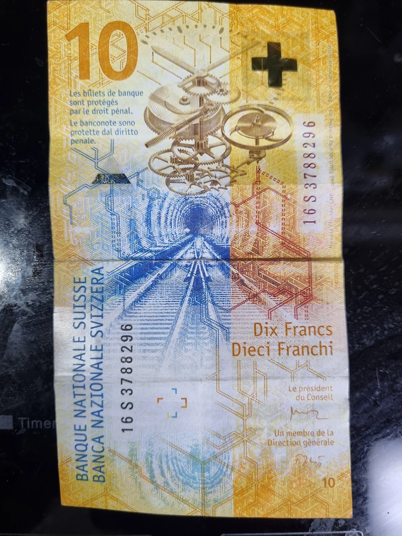 4개 언어가 다 들어가 있다(한쪽면은 프랑스어와 이탈리아어, 다른 면은 독어와 로만슈어로 쓰였다. )
