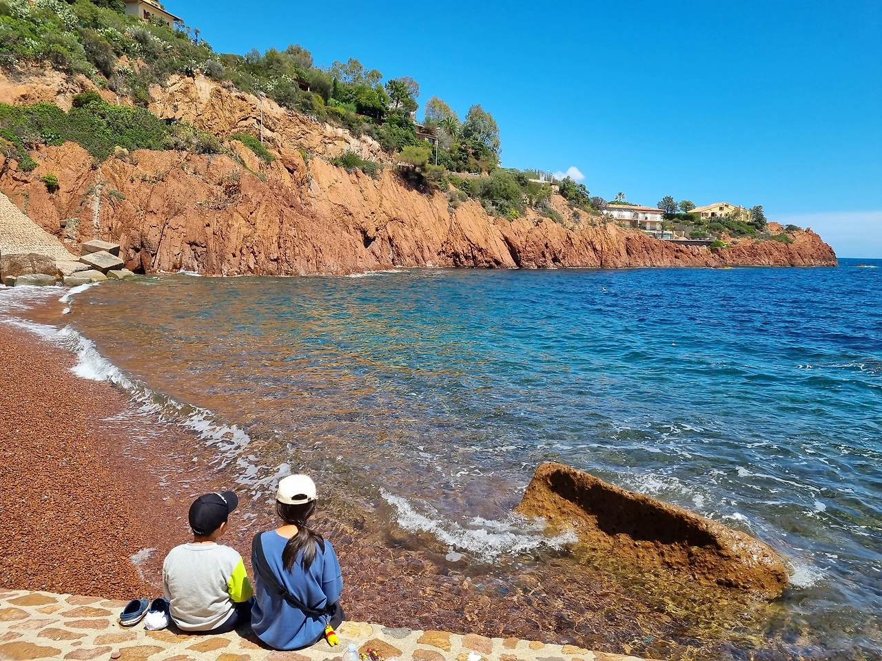 보석처럼 집들이 고르게 박힌 푸른 언덕 마을 / 붉은 암석과 붉은 자갈에 괴성을 지르며 "엄마! 저 돌멩이도 햇빛 많이 받아서 탄거지?"(Plage Abel Baliff)