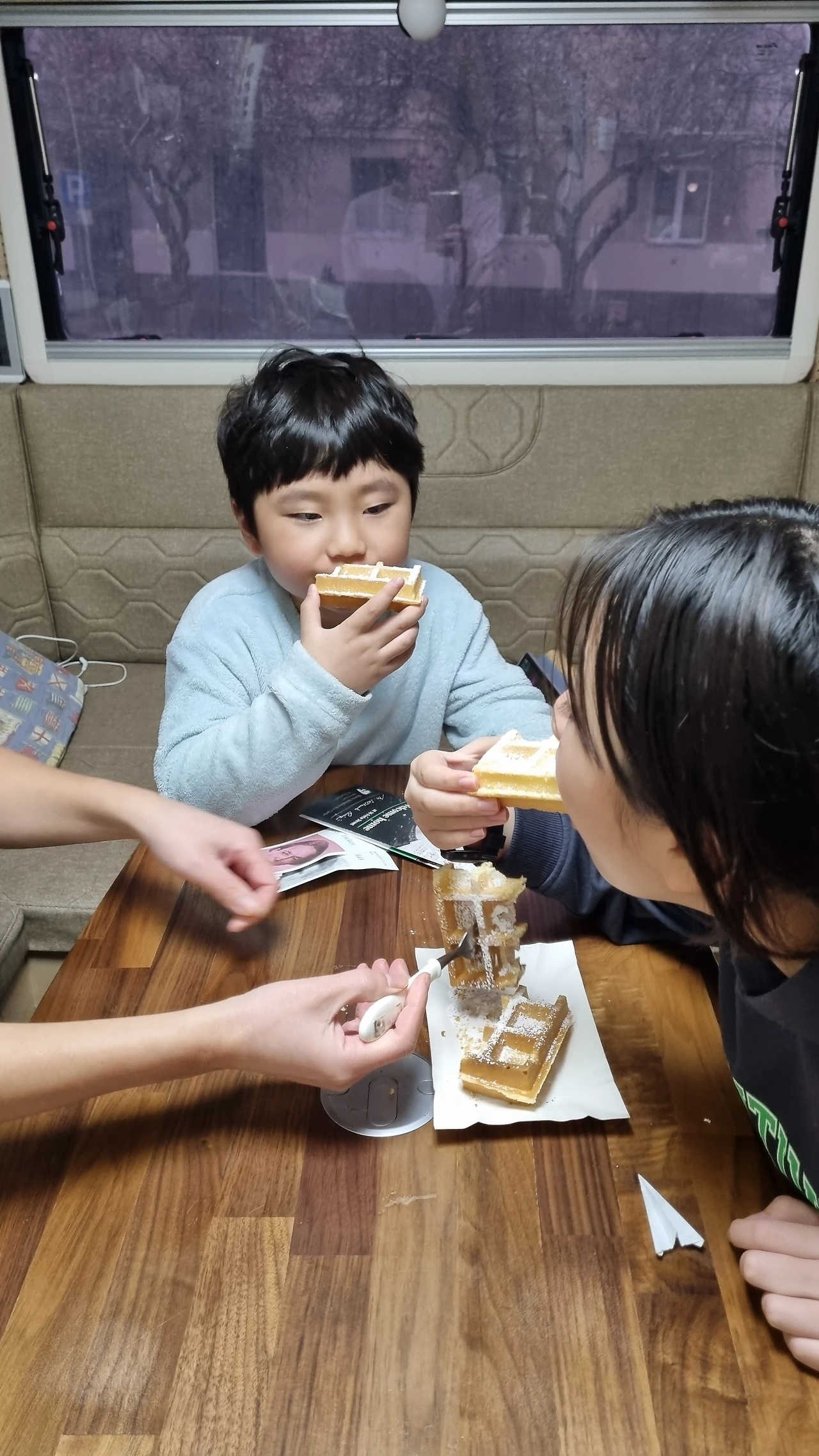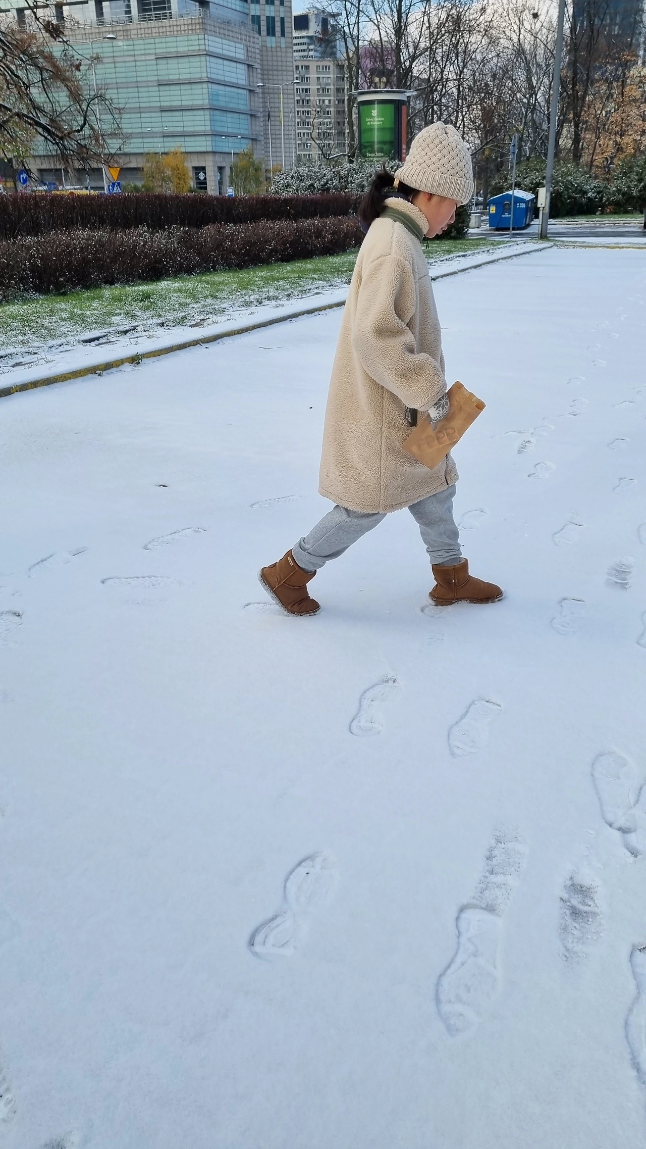 우리 어린이들은 노르웨이에서 올해의 첫눈을 영접하고 광분했는데도 또 반갑다며 창틀의 눈을 쓸어 담아 머리위로 셀프 세레머니를 해본다.